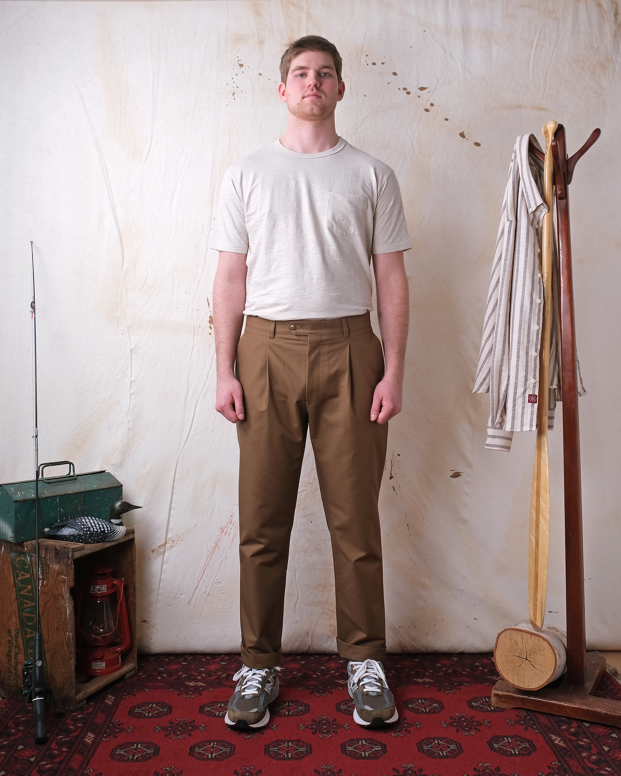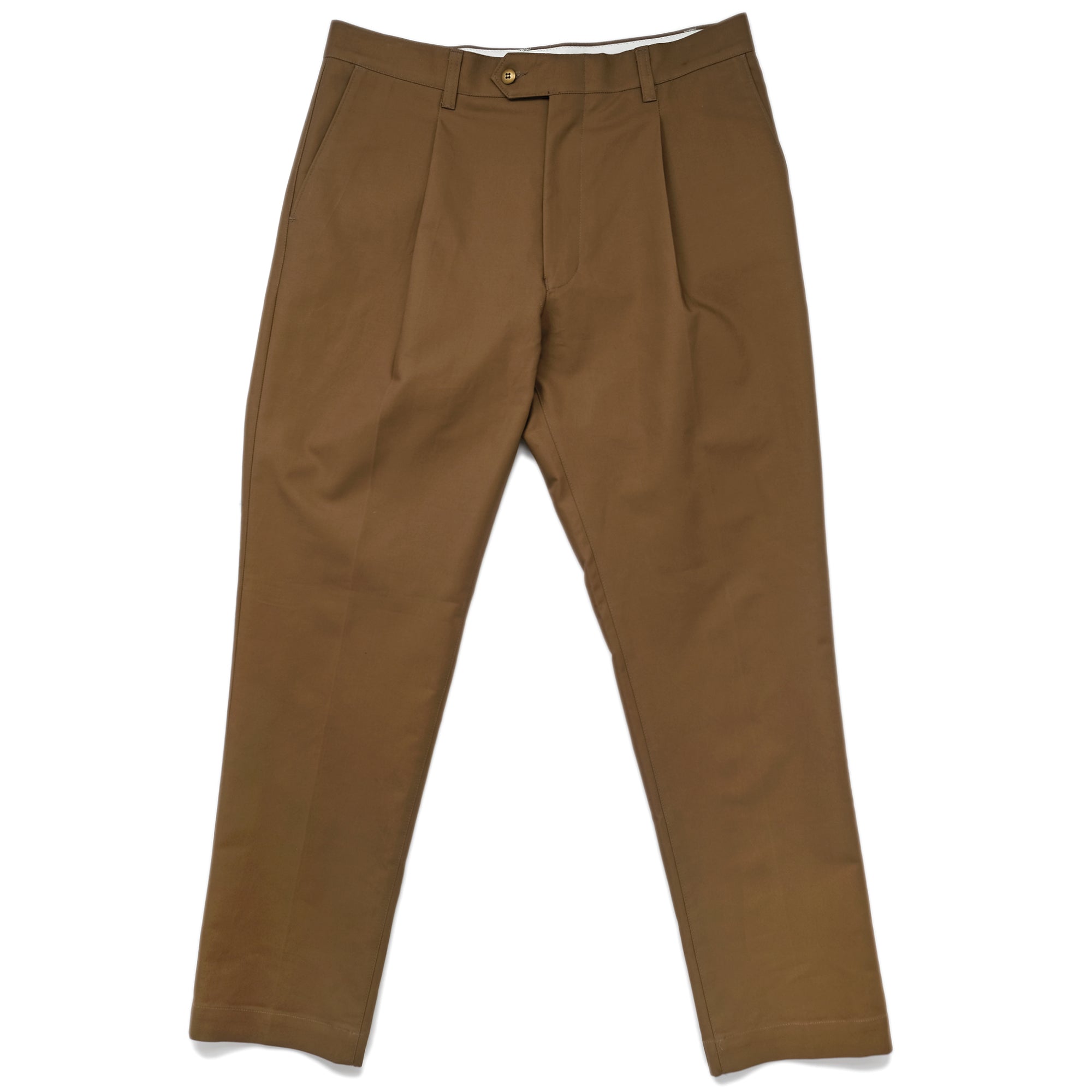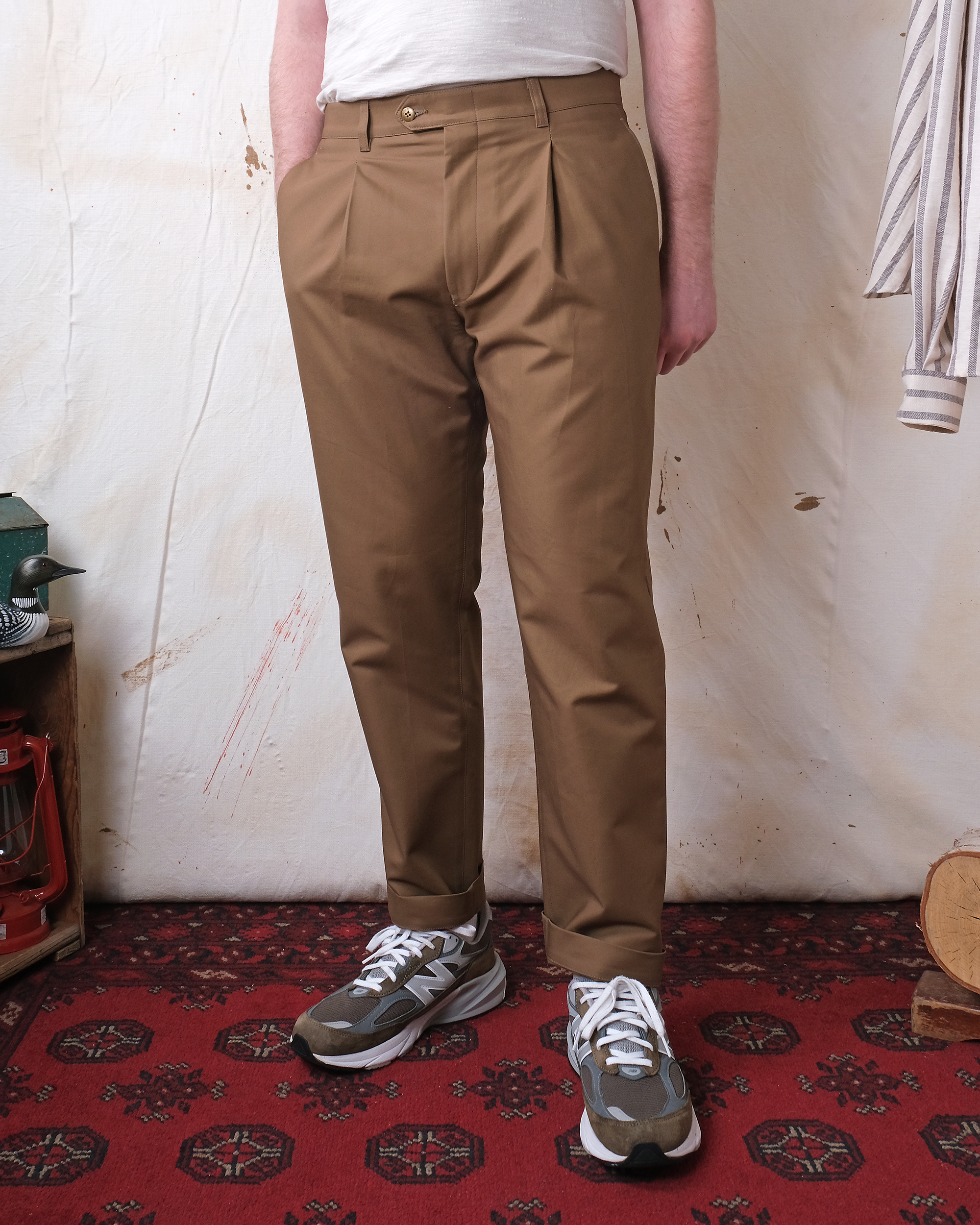 Crafted from premium Spanish sateen cotton, these Clay Pleated Pants deliver understated sophistication with real attention to detail. The tailored fit sits perfectly at the hip with subtle pleats that move with you, while functional hand pockets and a double-welt rear pocket keep things practical. A brass button closure adds a touch of quality that you'll notice every time you wear them.