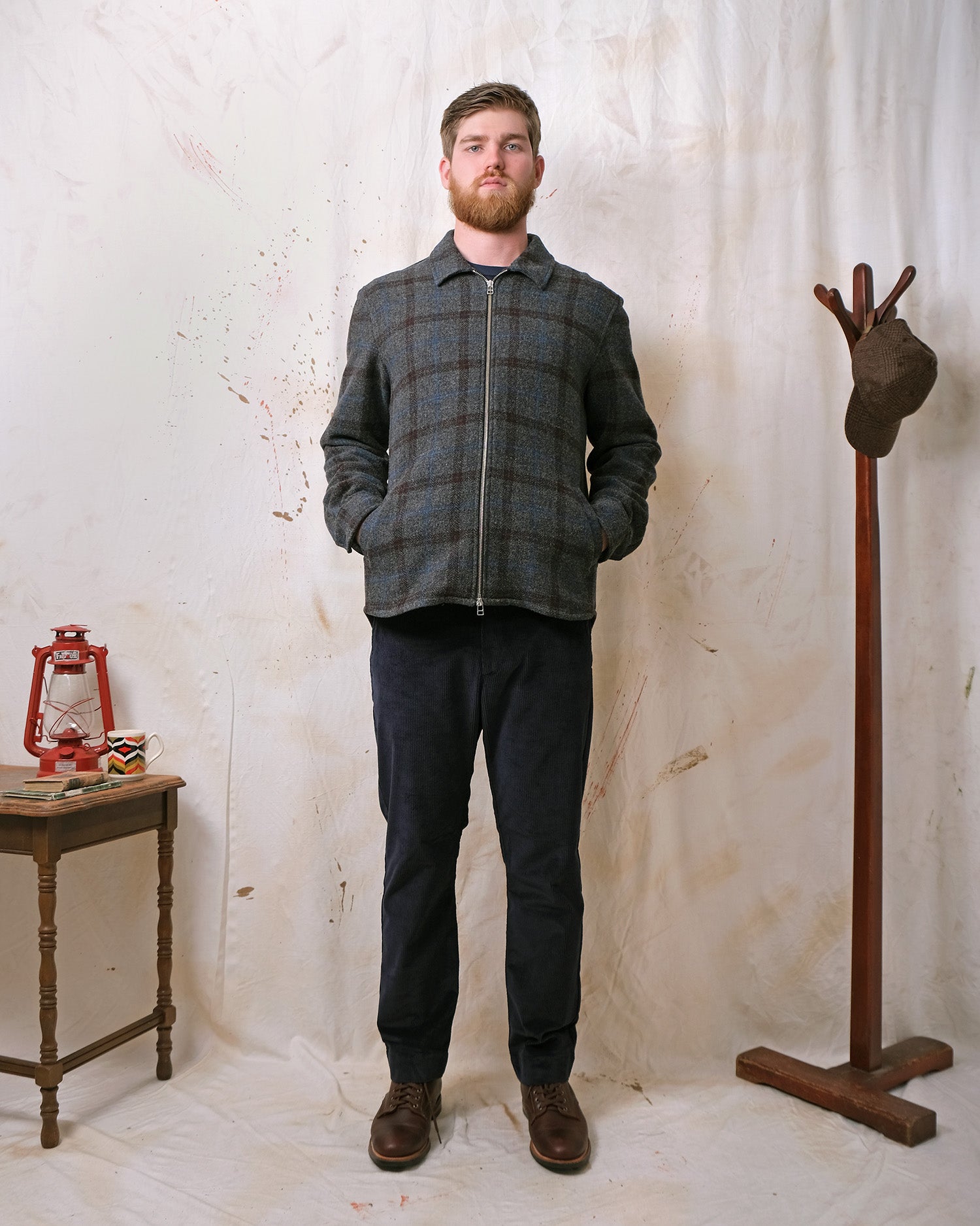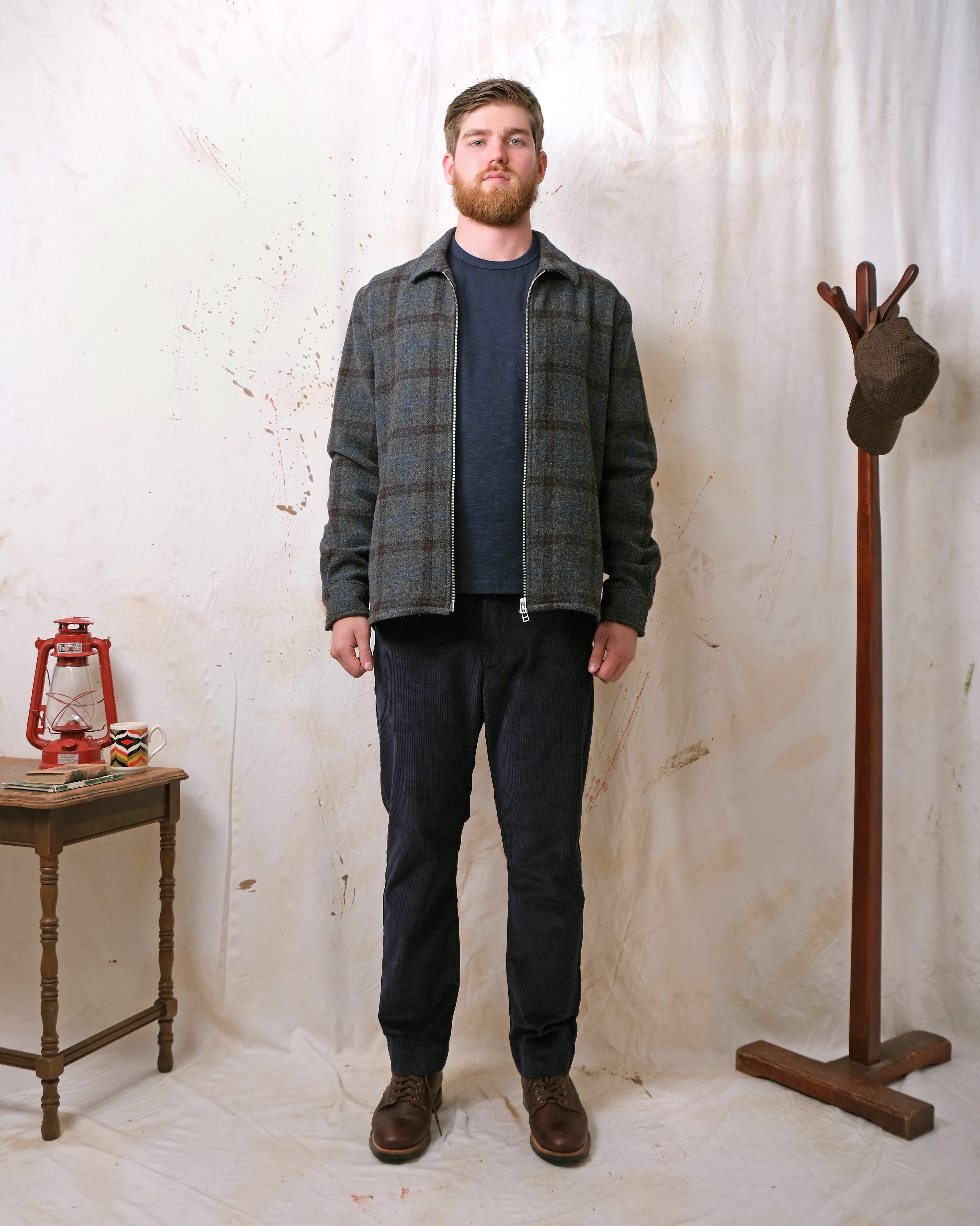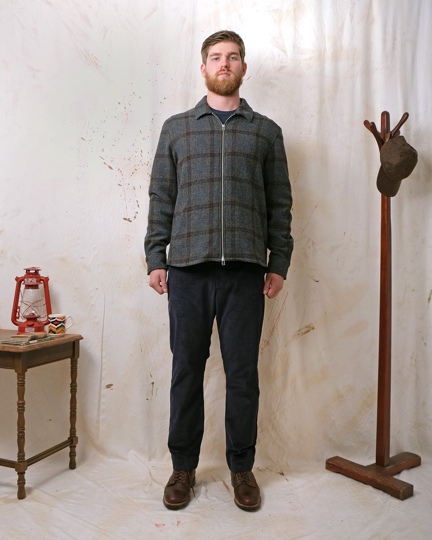 Crafted from Italian tweed-style virgin wool, the Grey Plaid Wool Zip Overshirt showcases a rich multi-coloured plaid design on a charcoal base. It offers a relaxed silhouette, flannel-lined single-welt hand pockets, a versatile two-way YKK zipper, and an elongated rear shirt-tail hem, ideal for layering.