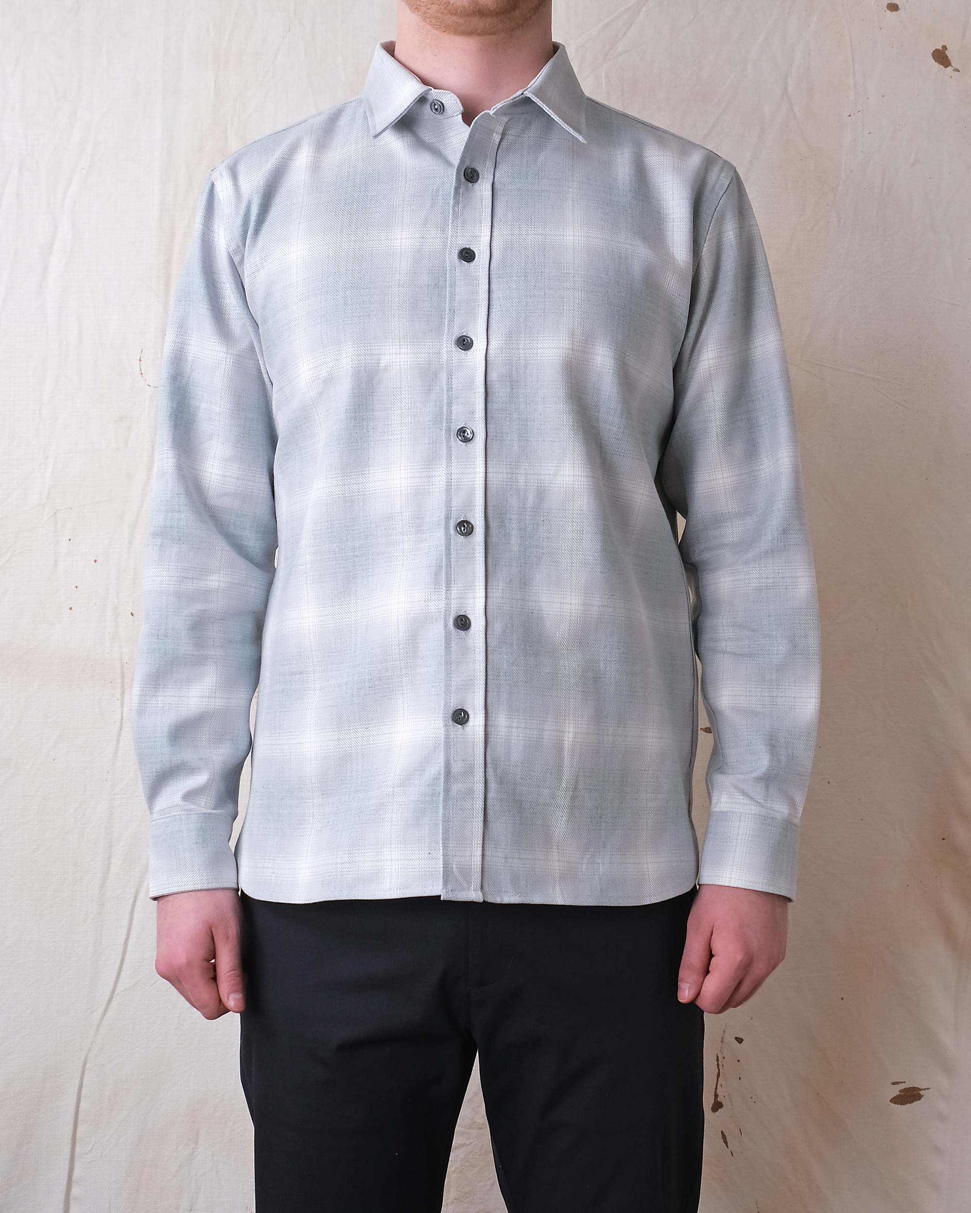 Elevate your everyday wardrobe with the Mist Plaid Easy Shirt. Crafted from premium Japanese indigo cotton, this versatile piece features a timeless plaid pattern that pairs effortlessly with any outfit. The relaxed fit and subtle back pleat create a refined silhouette, while grey mother-of-pearl buttons add an understated touch of sophistication. Perfect for layering or wearing solo, this shirt transitions seamlessly from office to weekend.