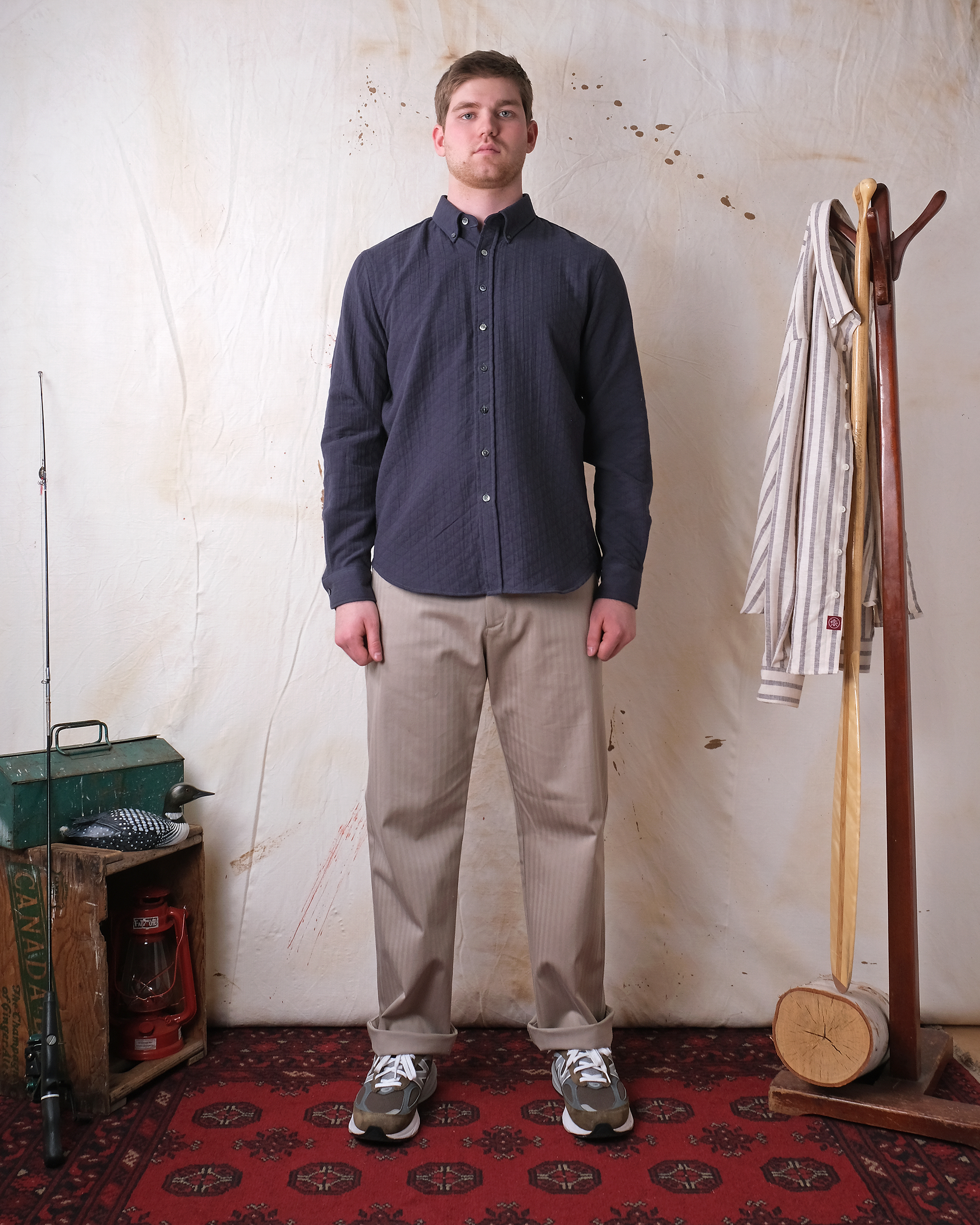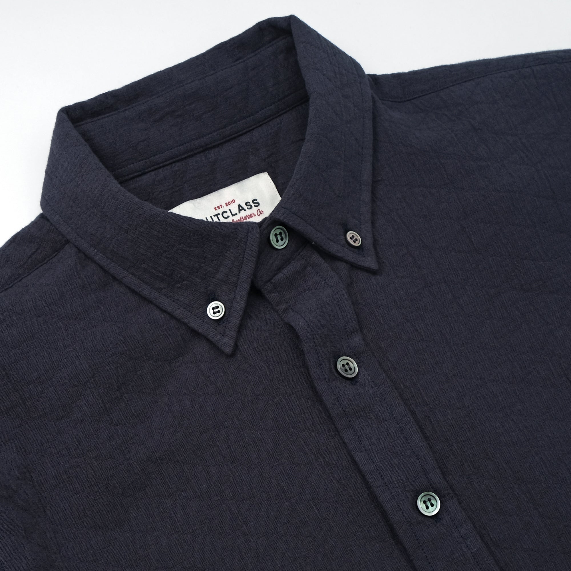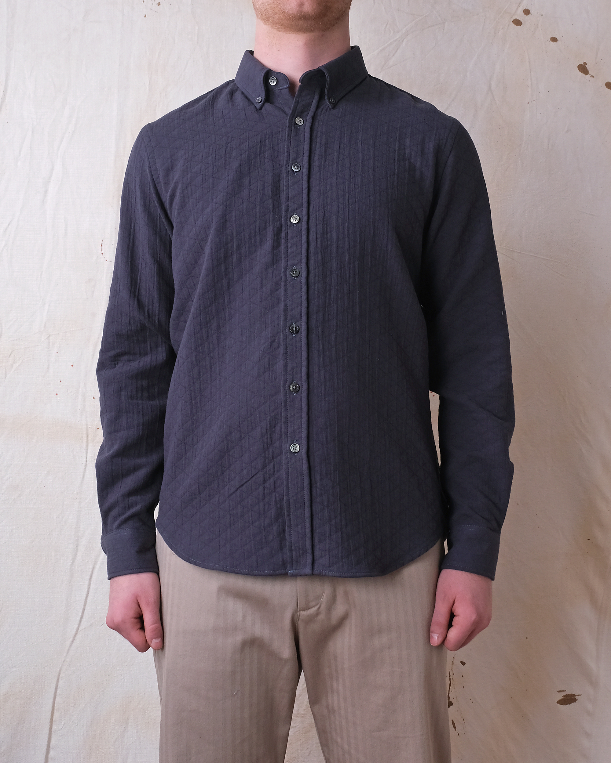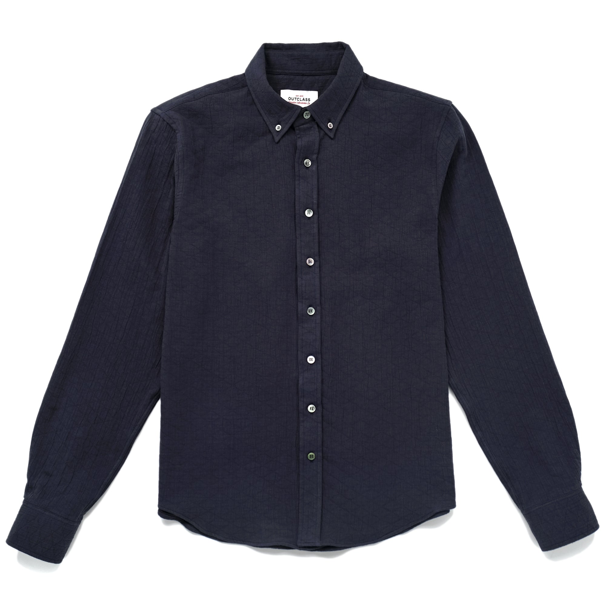 Timeless and easygoing, the Navy Quilted Classic Shirt is made from a soft quilted cotton fabric from Spain. Designed with a relaxed fit, button-down collar, and finished with grey mother of pearl buttons, the shirt offers a laid-back yet polished look.
