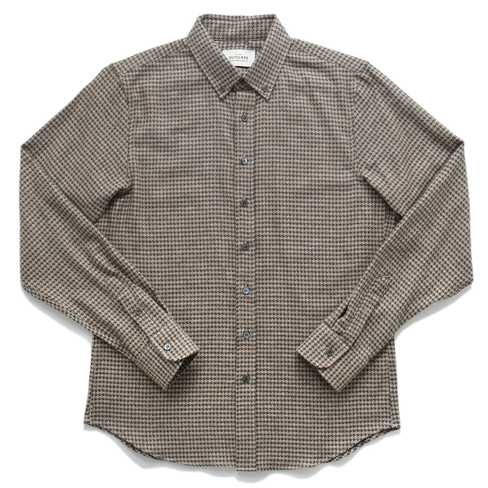 The Olive Houndstooth Classic Shirt brings timeless style and comfort to your wardrobe. Made from ultra-soft Portuguese flannel, it's complete with a relaxed fit, button-down collar and grey mother of pearl buttons.