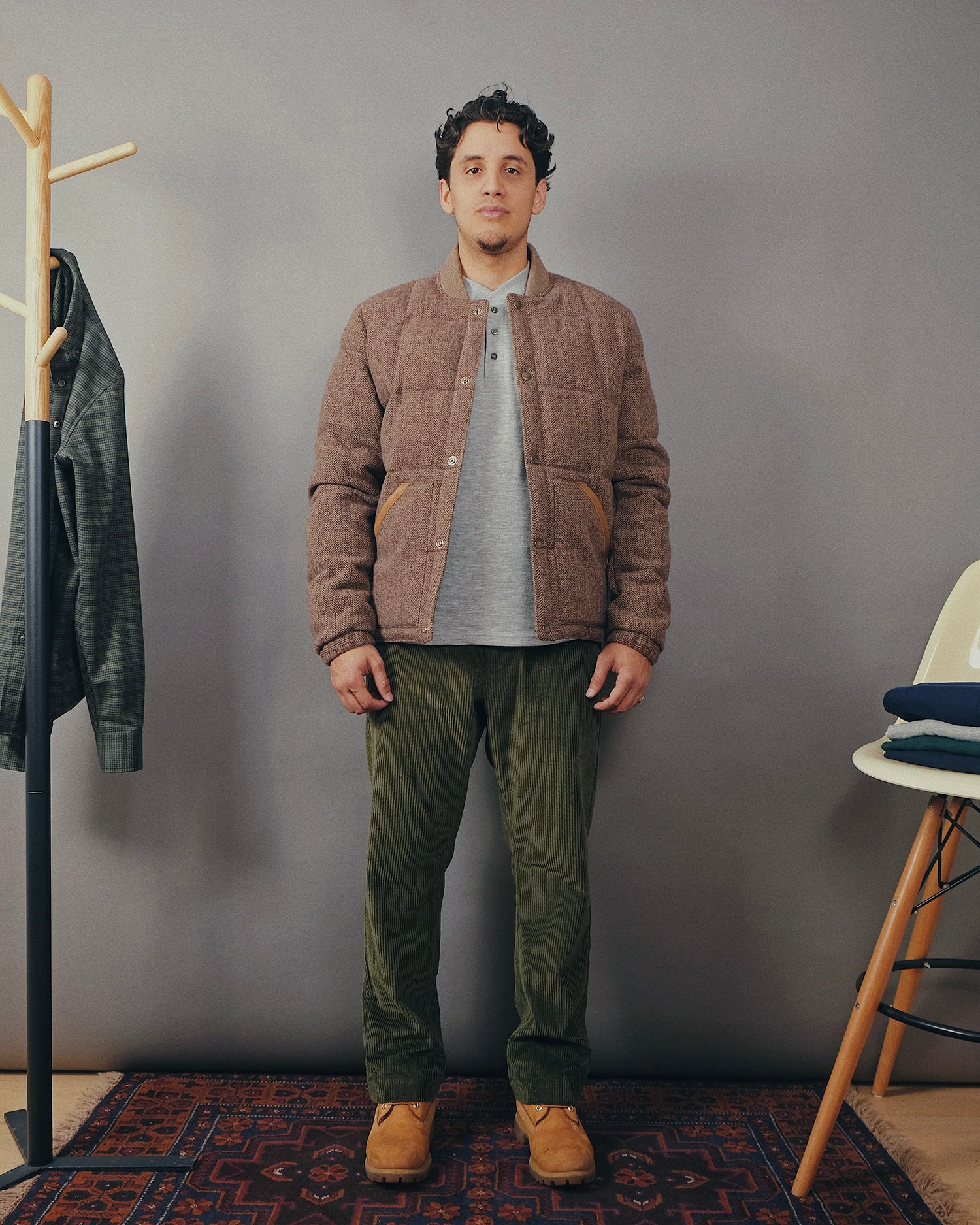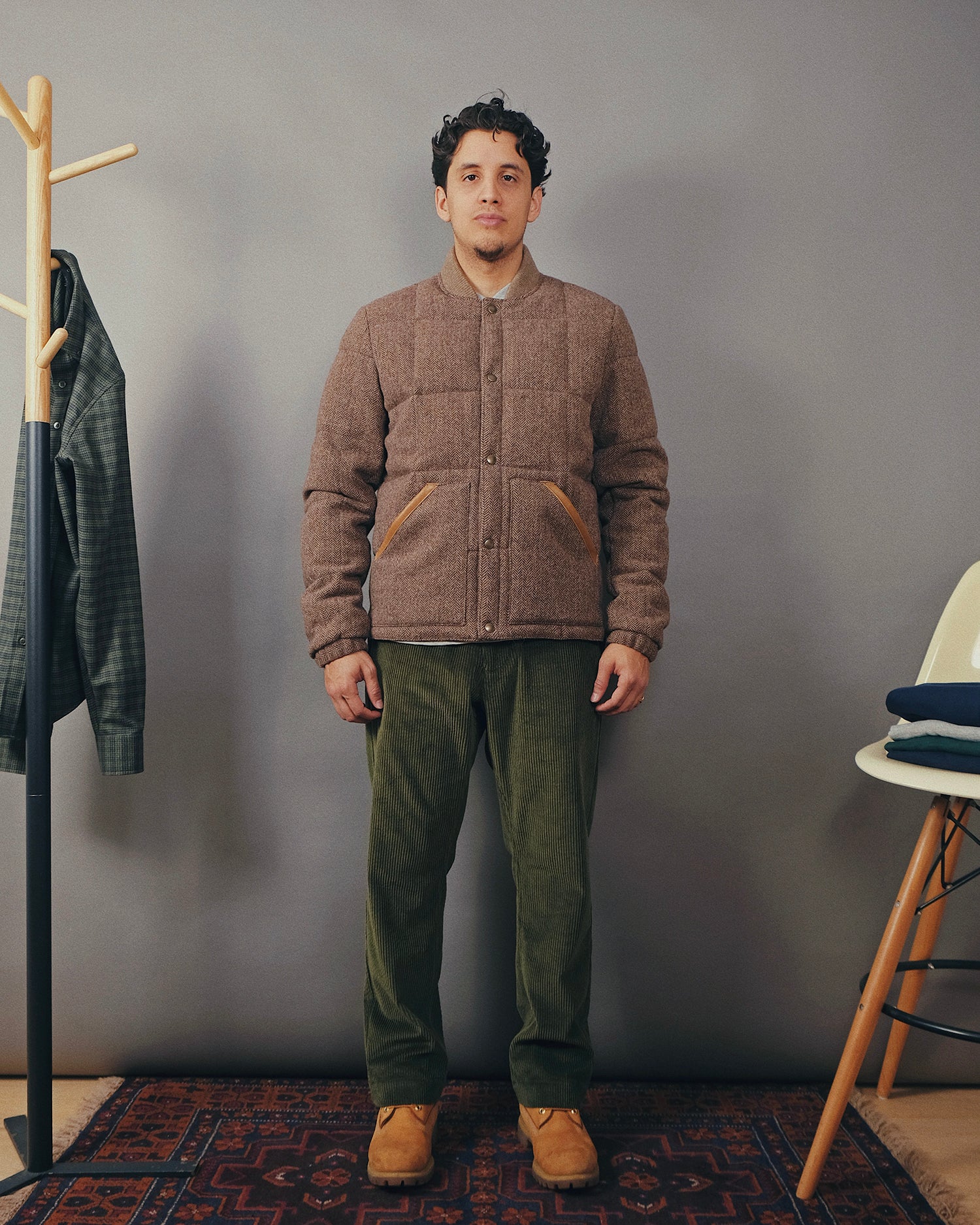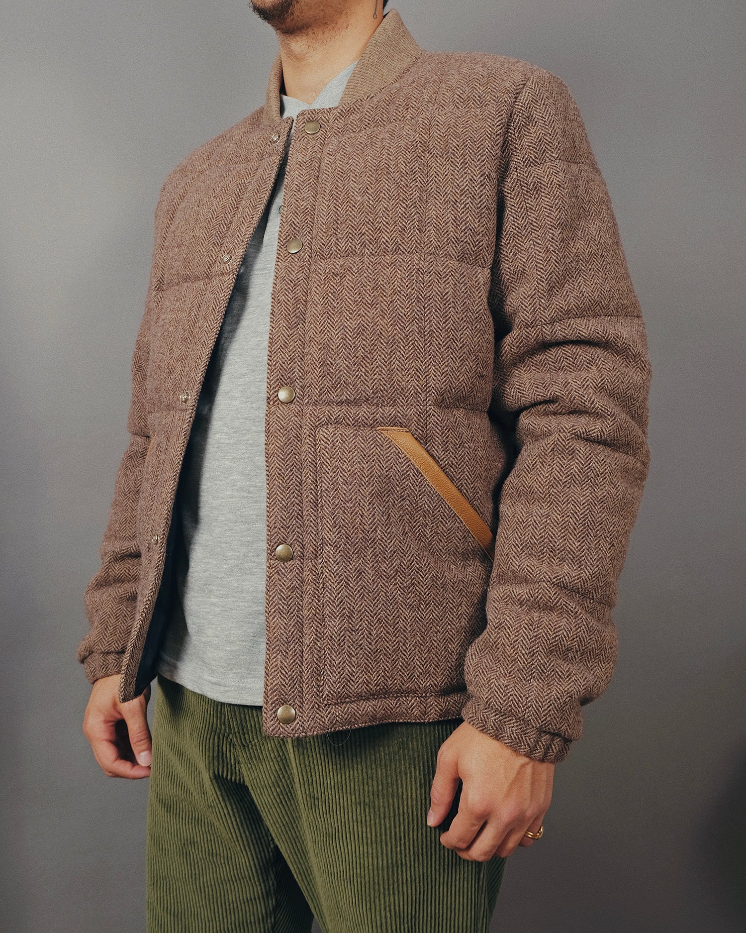 This down jacket features a 100% Italian wool exterior and includes leather-trimmed hand pockets, elastic cuffs, a sturdy rib neckline, and an interior breast pocket. Filled with a 700 down power, this versatile jacket is perfect for layering in colder months.