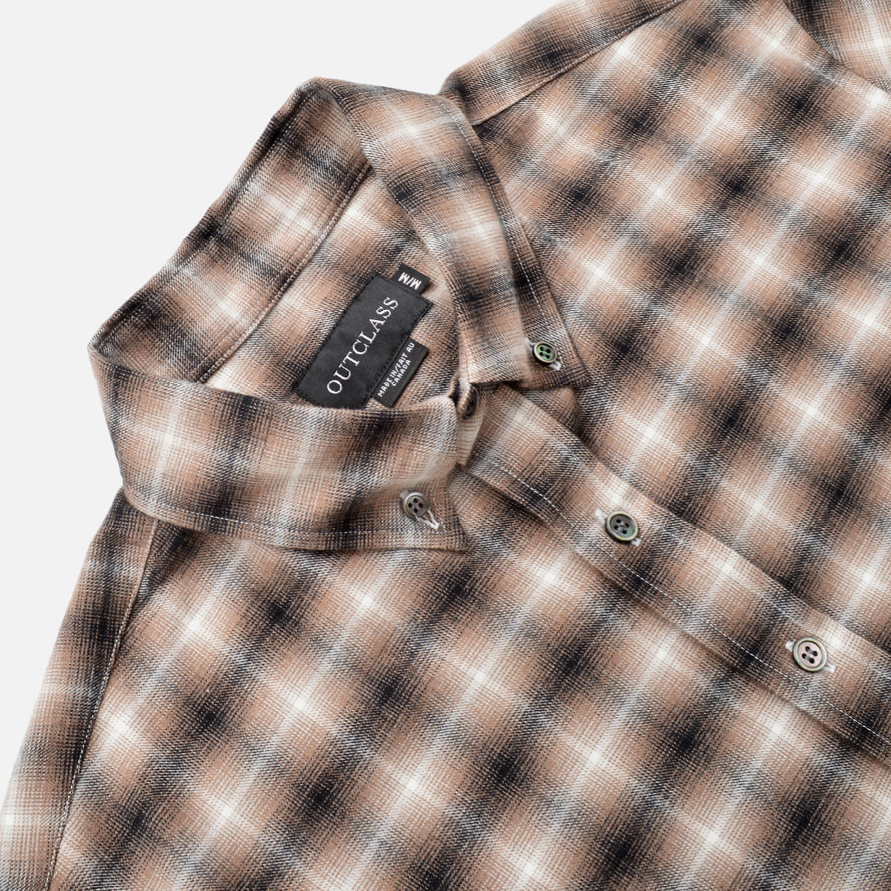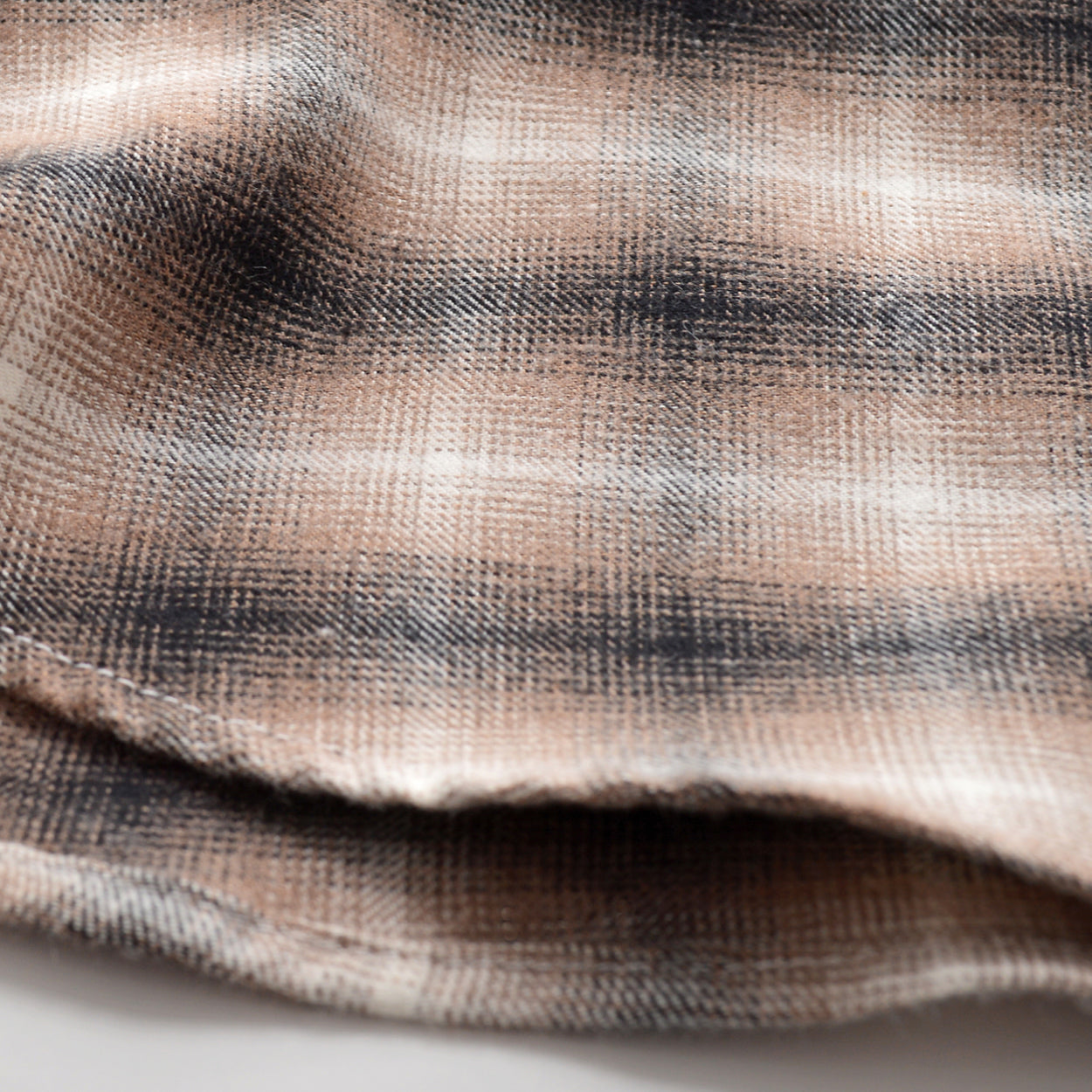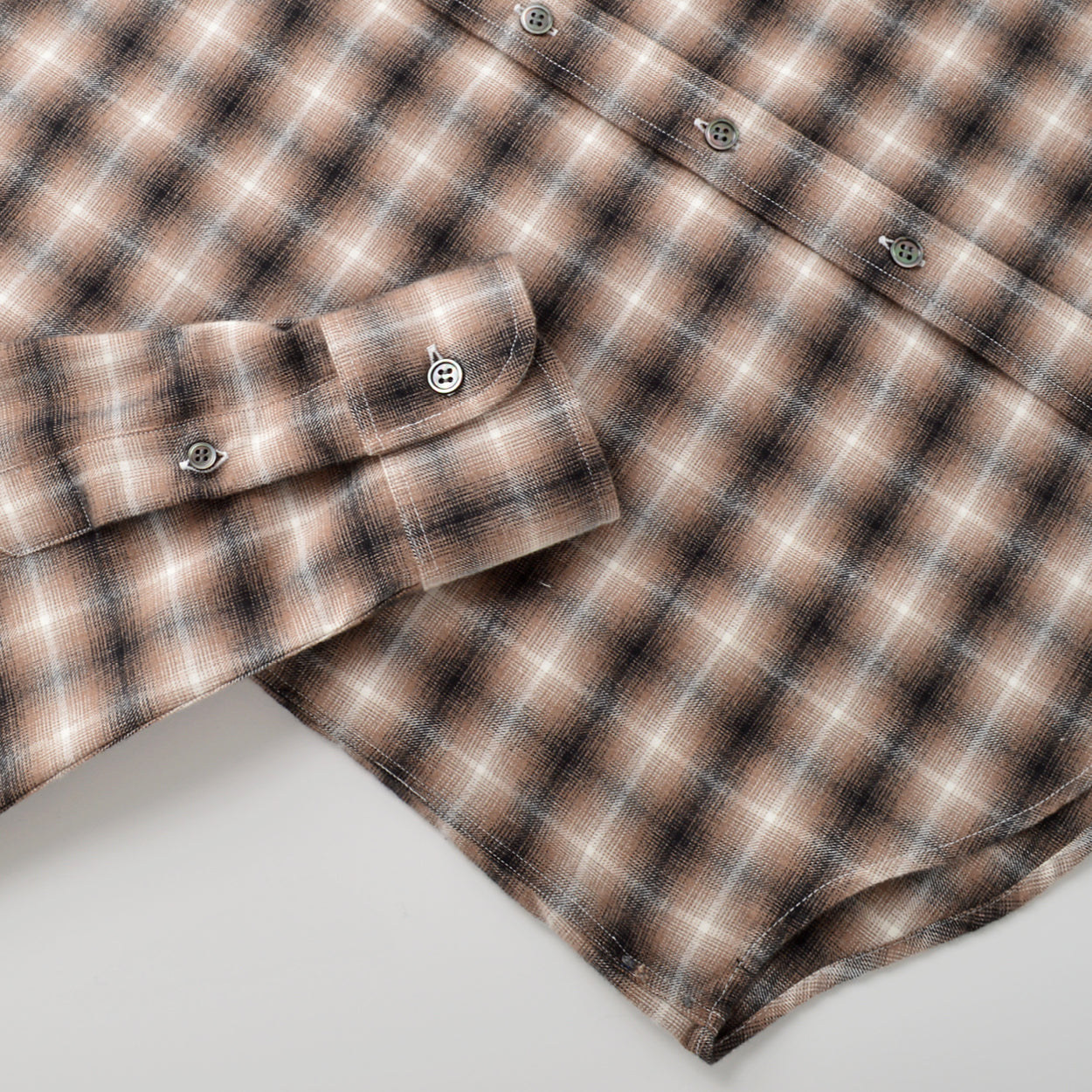 The Hazel Shadow Plaid Flannel Shirt is crafted from soft Portuguese flannel that offers a subtle, plaid pattern. It features double-needle seams and a button-down collar for a classic look and comfortable fit. Grey mother of pearl buttons complete the timeless design.
