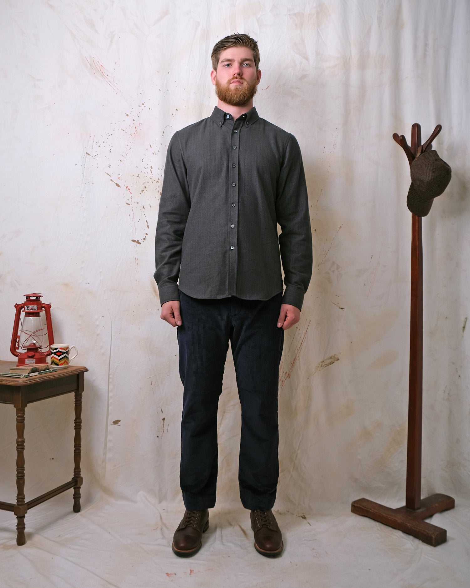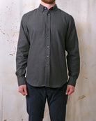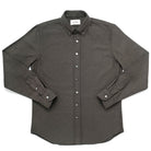 The Olive Herringbone Flannel Shirt is made with an ultra-soft flannel fabric from Portugal with subtle herringbone stripes throughout. The shirt sports a relaxed fit, button-down collar and grey mother of pearl buttons.