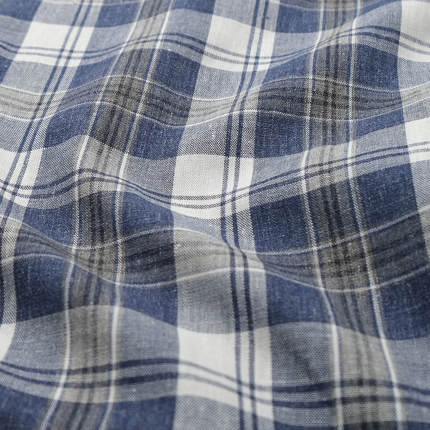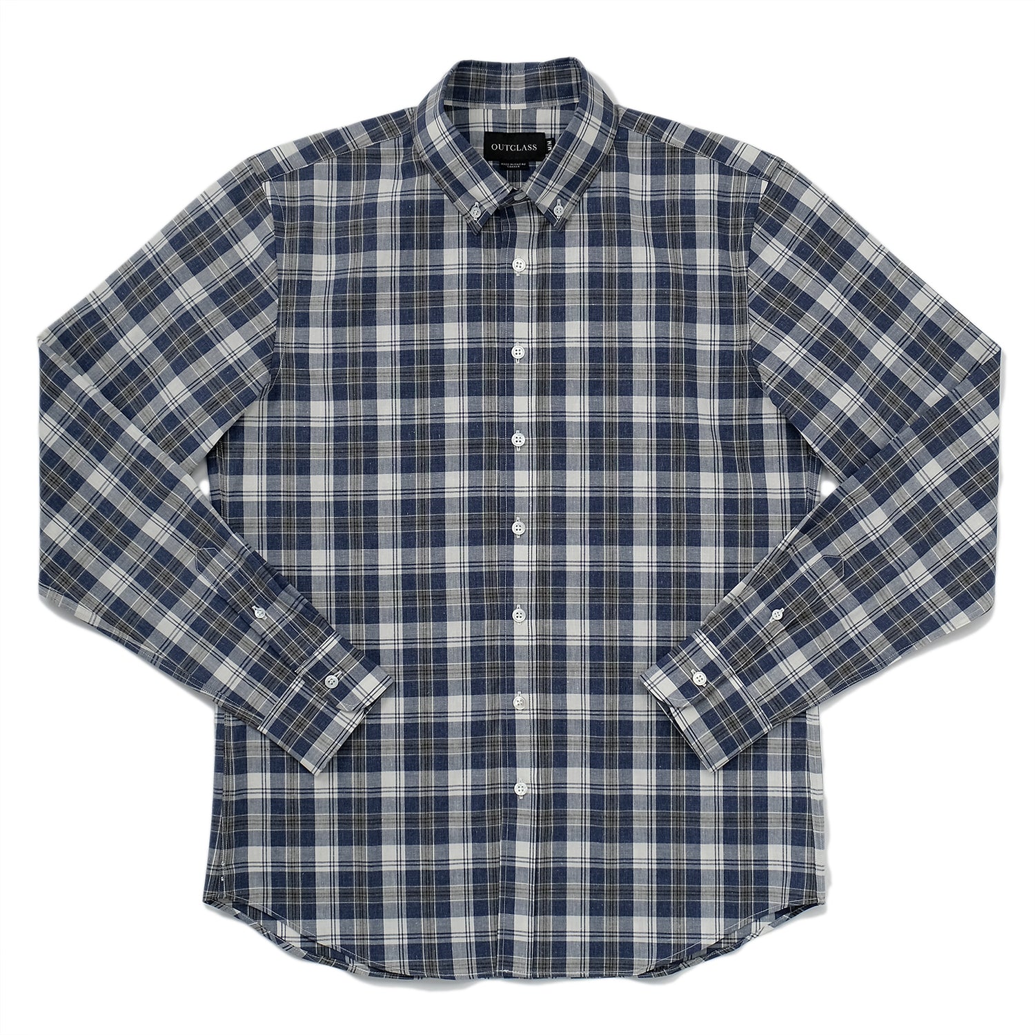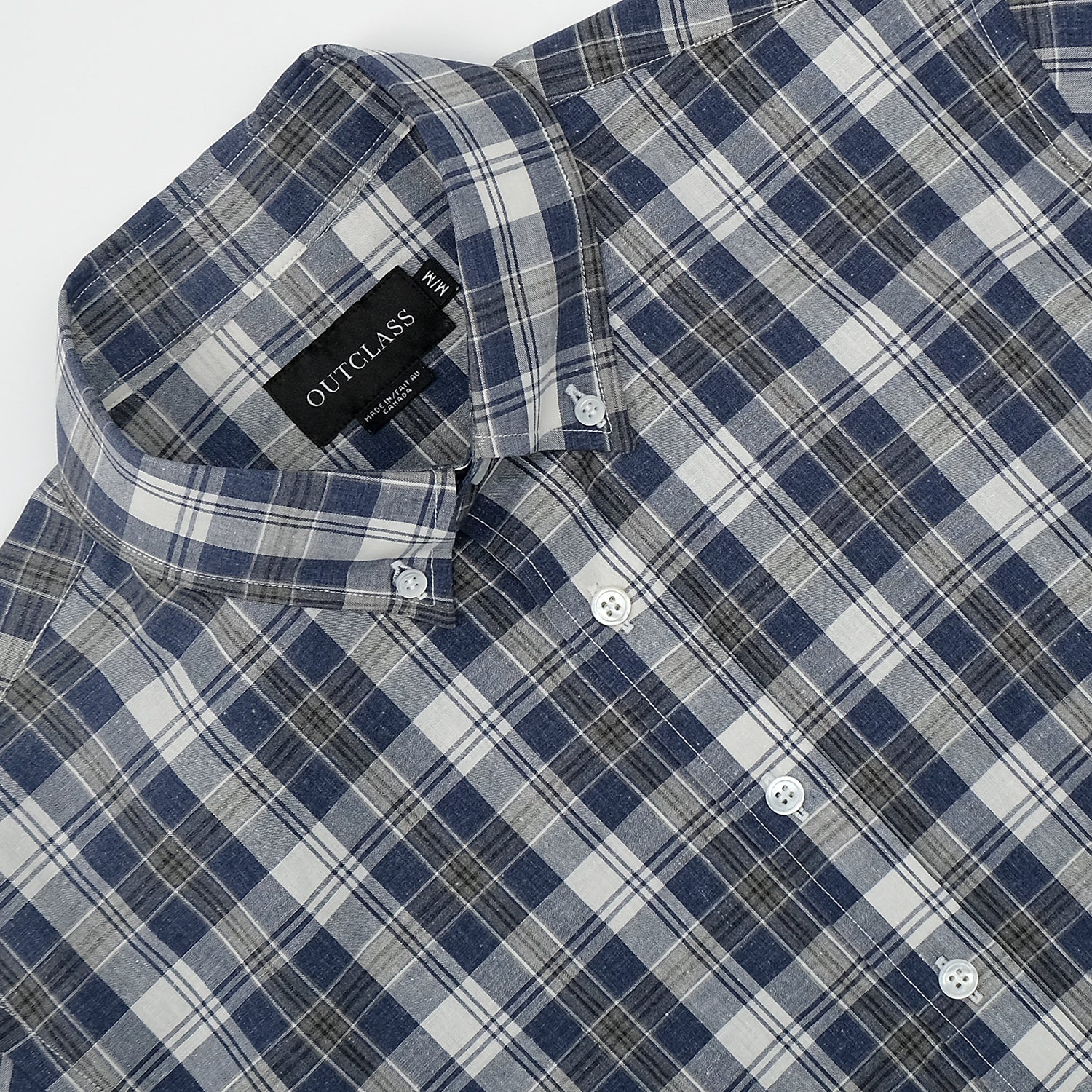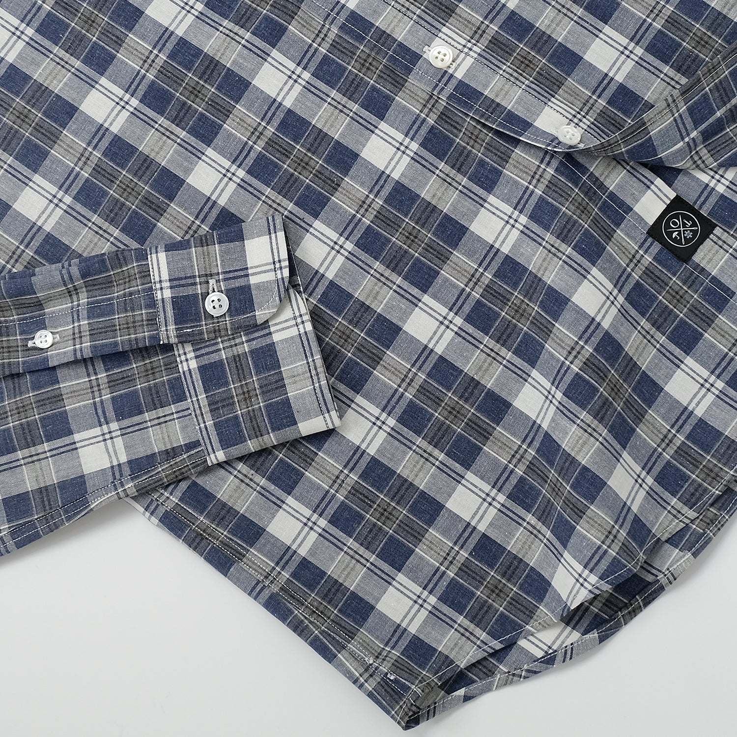 This shirt is made from Spanish cotton fabric; with a soft and breezy hand feel, it is constructed with double-needle seams, a button-down collar and finished with white mother of pearl buttons.