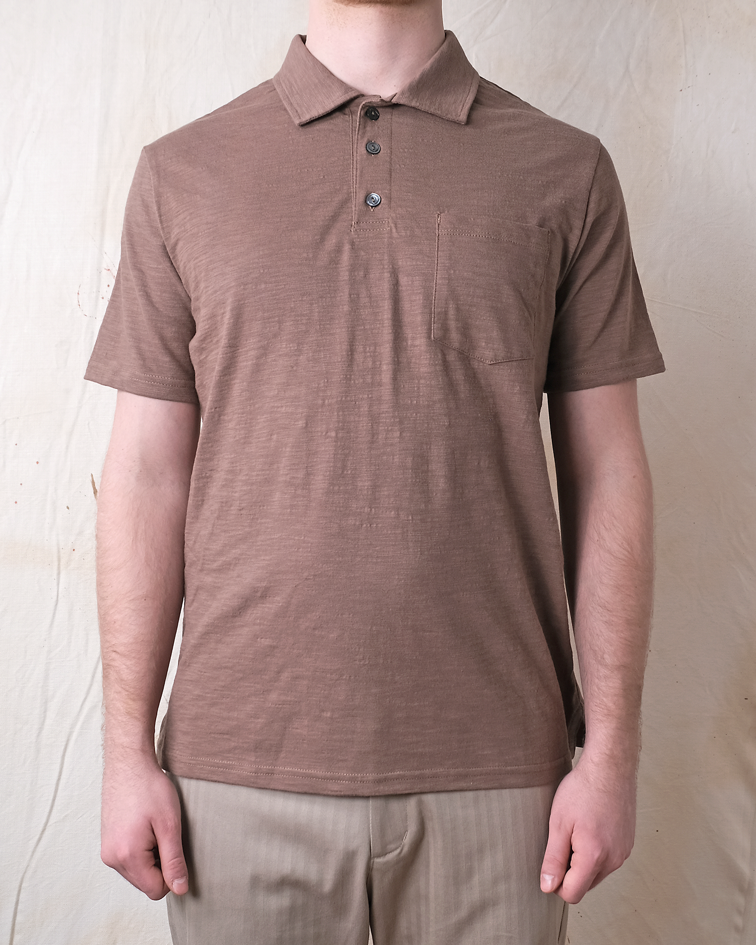 Elevate your casual wardrobe with the Mocha Slub Polo, crafted from premium Toronto-milled cotton jersey that delivers exceptional softness and breathability. This versatile piece features a relaxed fit that moves with you, complemented by sophisticated grey mother of pearl buttons and a clean straight hem. Perfect for weekend outings or layering into your everyday rotation, this polo combines understated elegance with effortless comfort. The quality construction ensures durability wash after wash, making it a timeless staple worth investing in.