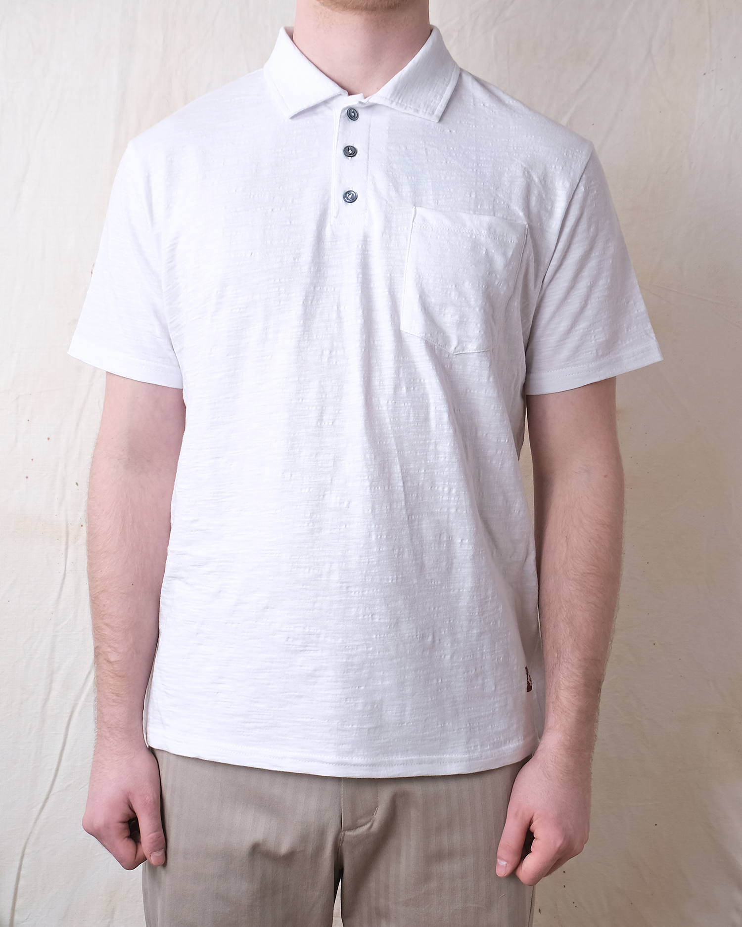 Elevate your casual wardrobe with the White Slub Polo, crafted from premium Toronto-milled cotton jersey that delivers exceptional softness and breathability. This versatile piece features a relaxed fit that moves with you, complemented by sophisticated grey mother of pearl buttons and a clean straight hem. Perfect for weekend outings or layering into your everyday rotation, this polo combines understated elegance with effortless comfort. The quality construction ensures durability wash after wash, making it a timeless staple worth investing in.