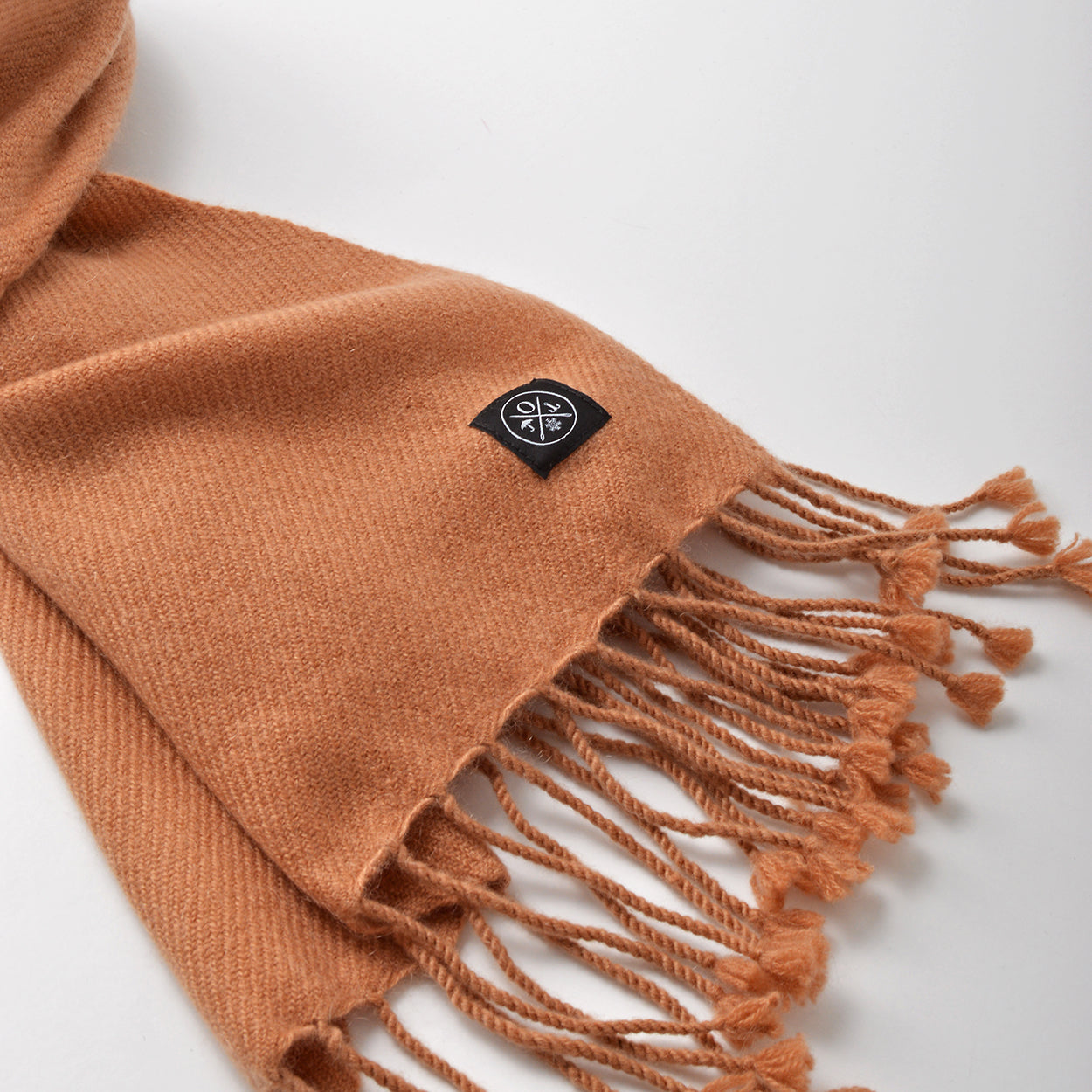 This scarf is made by hand using a super soft pashmina cashmere in Nepal. The Scarf features fringe tips on both ends and finished with an Outclass crest label on the bottom right.
