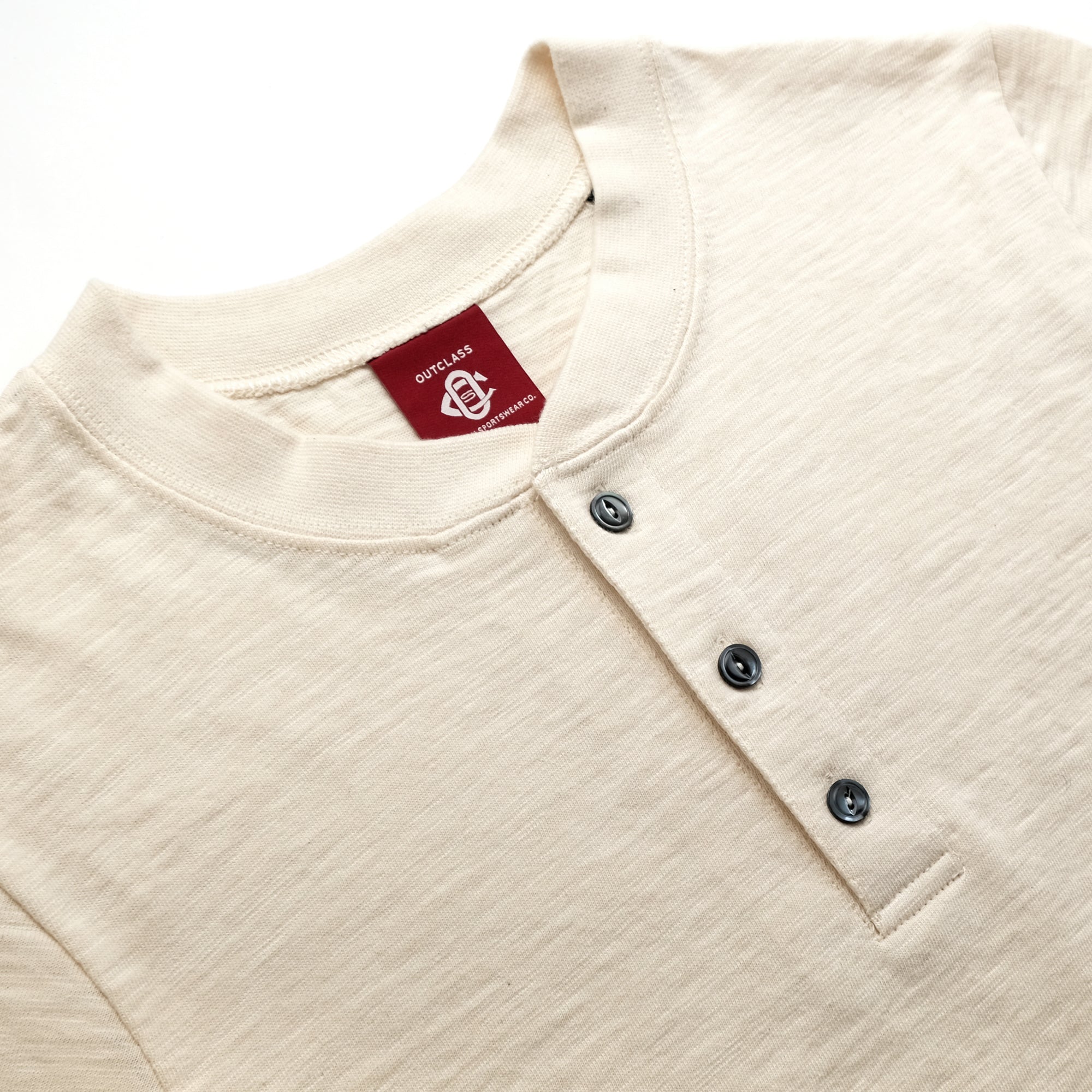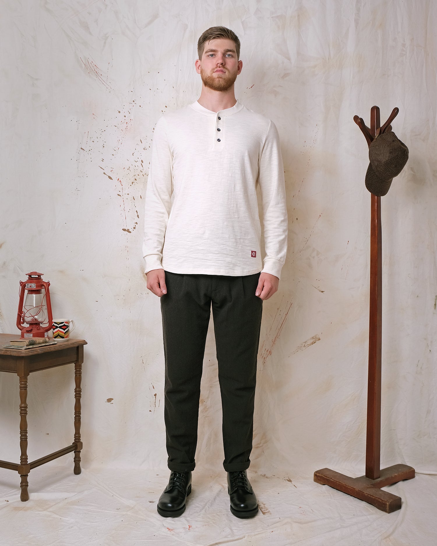 Made in Canada from start to finish, the Double Slub L/S Henley is made from Toronto-milled double-jersey cotton, dyed, cut, and sewn domestically. With a relaxed fit, mother of pearl buttons, and a rounded hem, it combines local craftsmanship with everyday comfort and style.