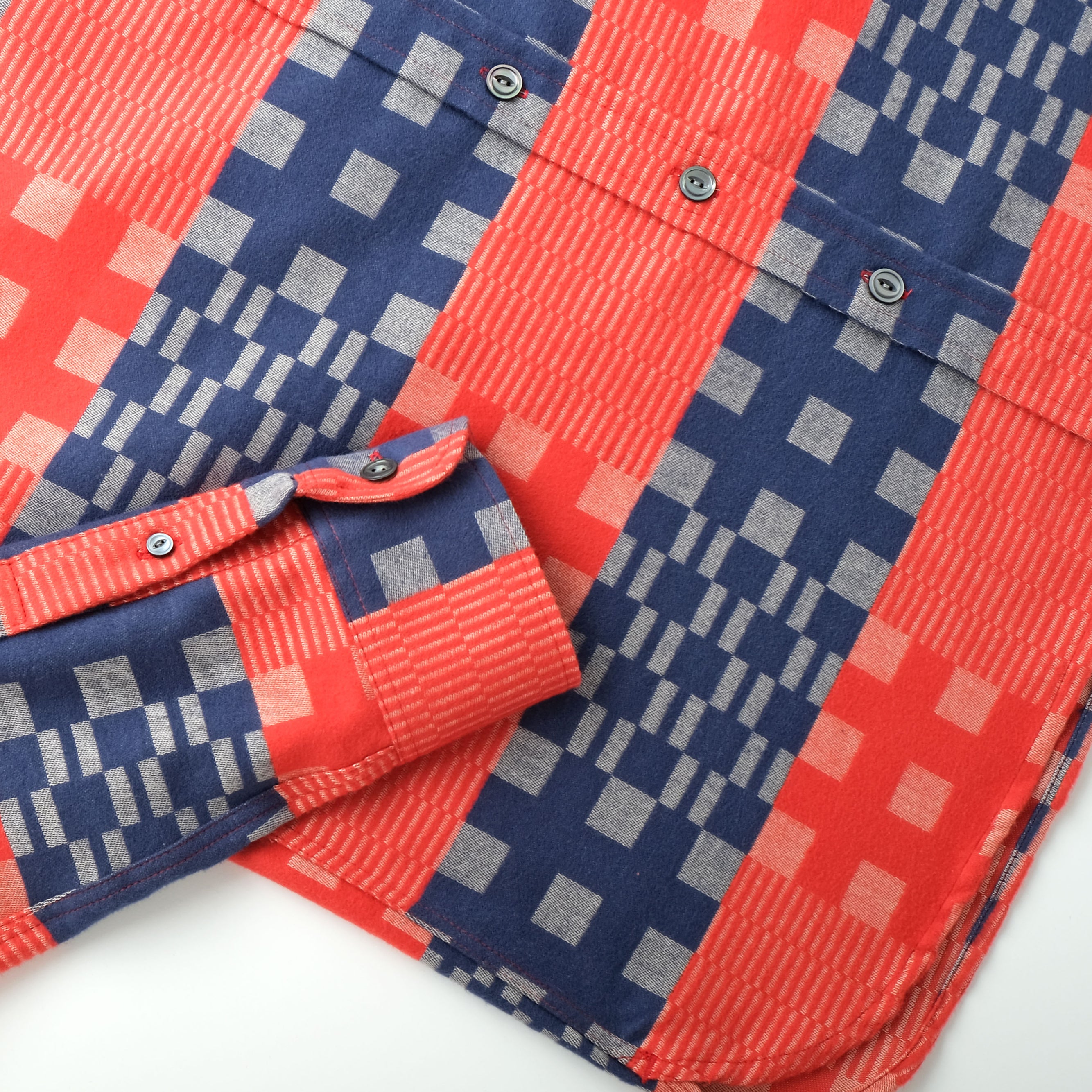 Easy by name and nature, the Geometric Blanket Easy Shirt is built for comfort that lasts. Cut from heavyweight Portuguese flannel, it’s warm, sturdy, and ready to be lived in. It features bold geometric colour blocks, a relaxed fit and back pleat, and finished with grey cat’s eye mother of pearl buttons.