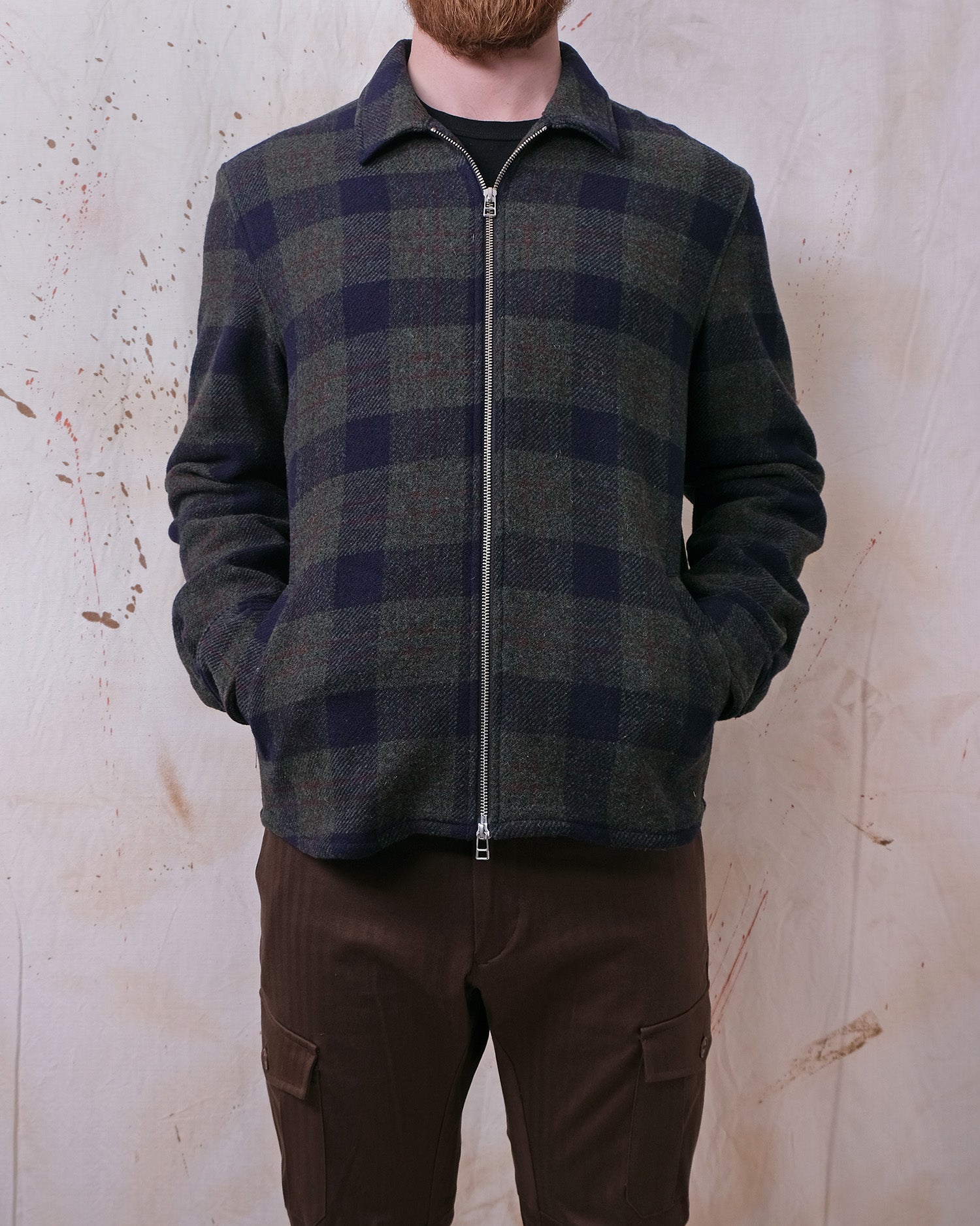 The Hunter Plaid Wool Zip Overshirt is made with a soft felted wool from Italy that features a plaid pattern throughout. The overshirt sports a relaxed fit, single-welt hand pockets that are flannel lined, and a two-way YKK zipper.