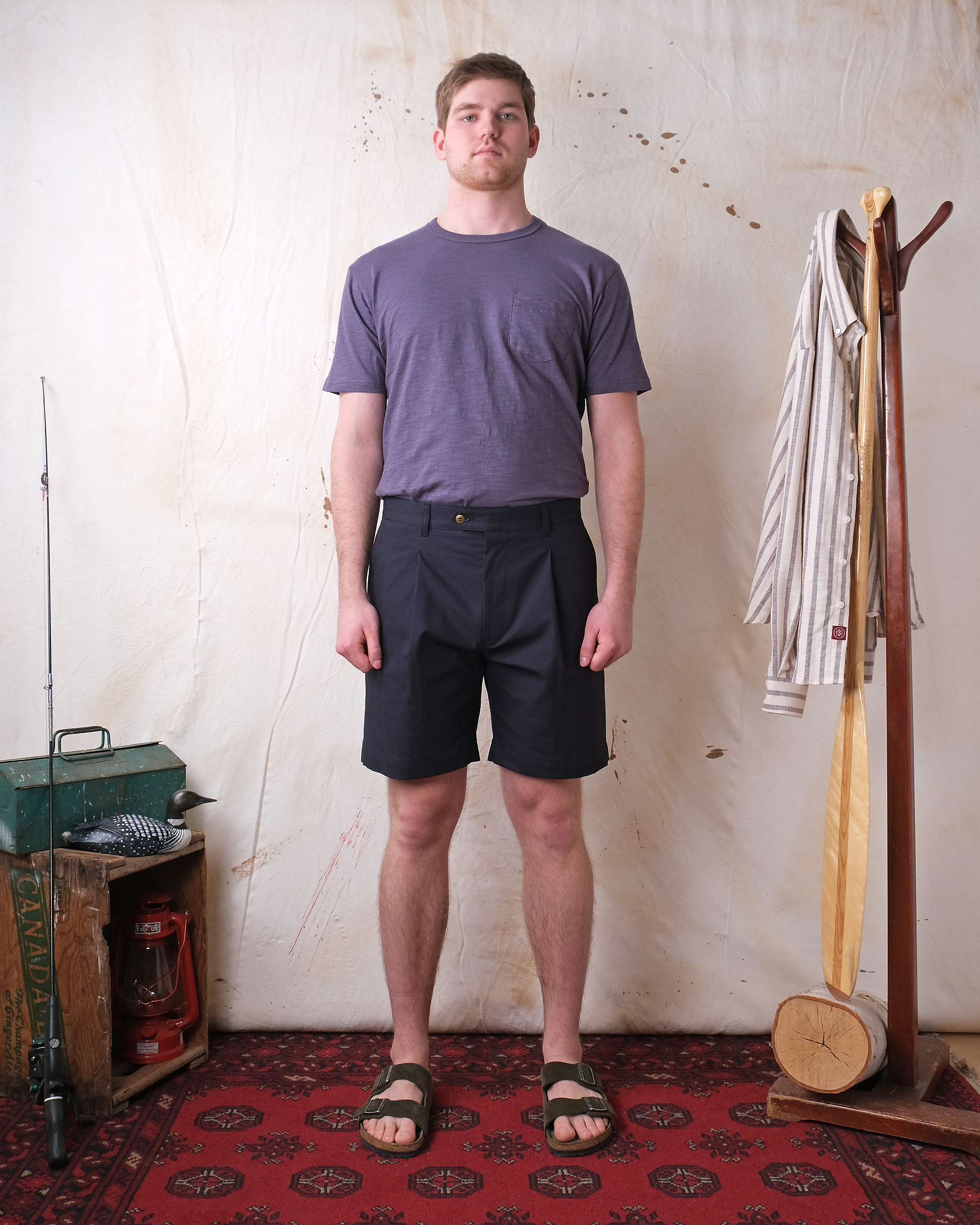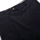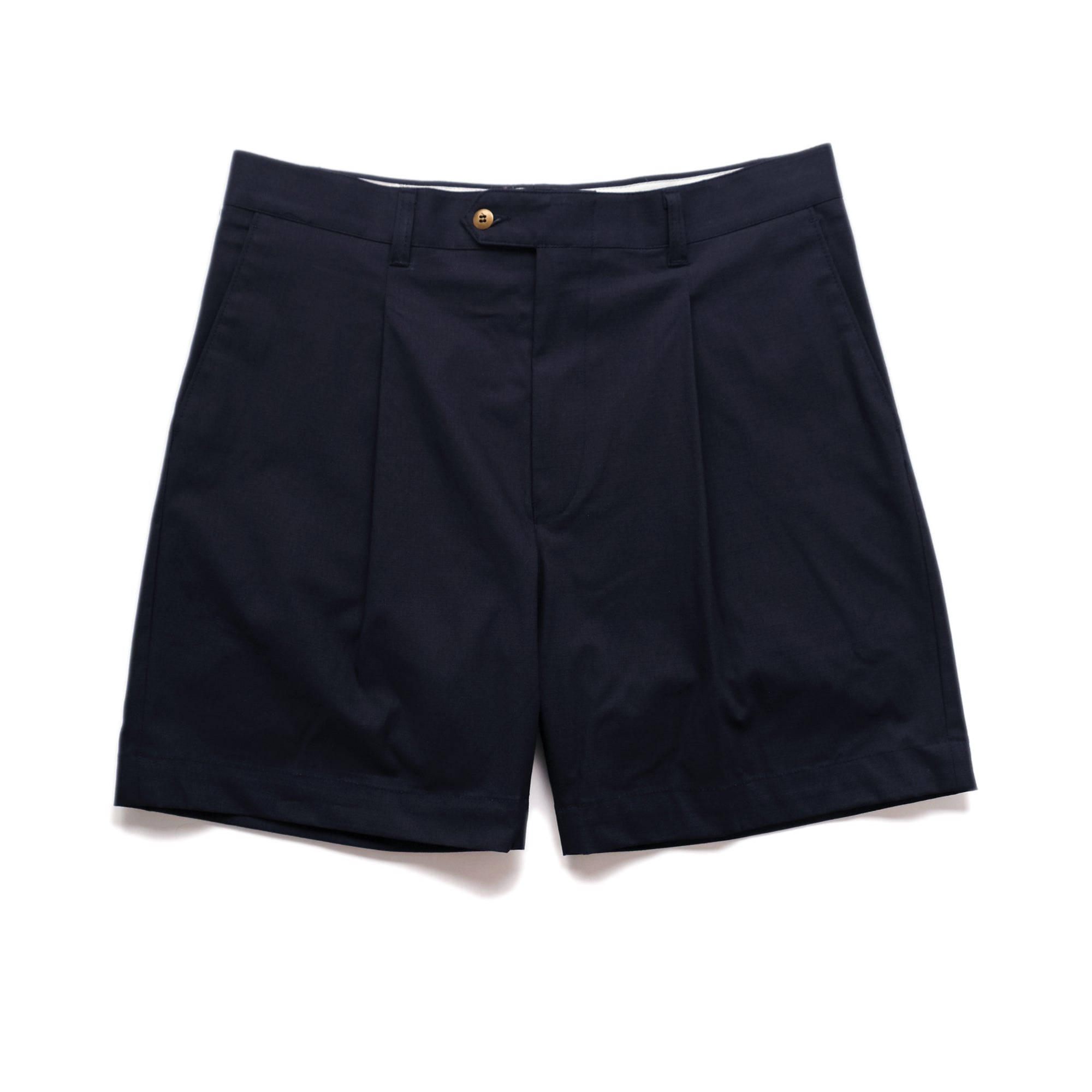 The Navy Ripstop Pleated Short is crafted from a crisp cotton fabric from Spain. The tailored fit is enhanced with pleats at the hips, a zipper fly and a brass button closure. With slanted front pockets and double-welt rear pockets, these shorts blend style and functionality seamlessly.