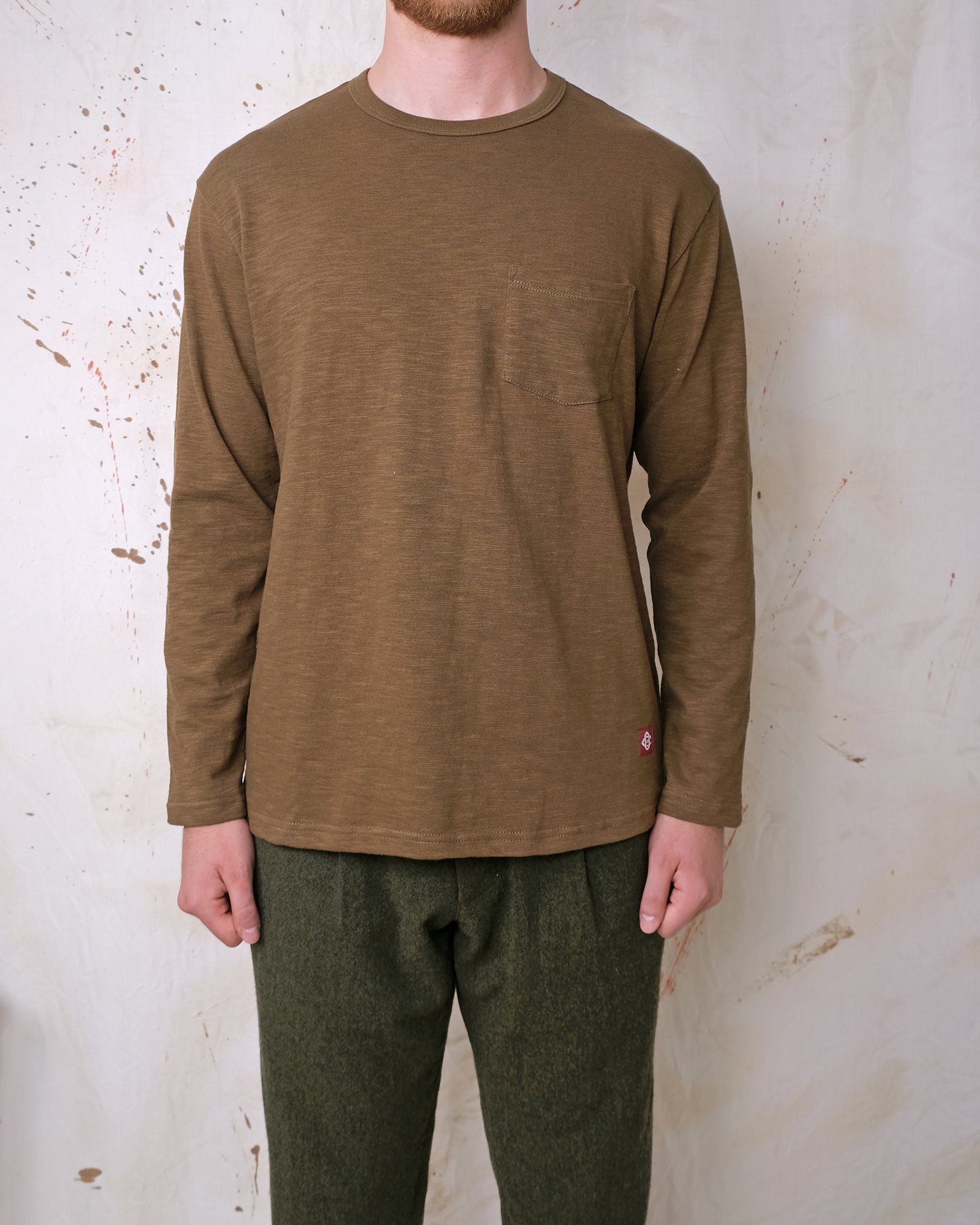 Olive Double Slub L/S Pocket T-Shirt