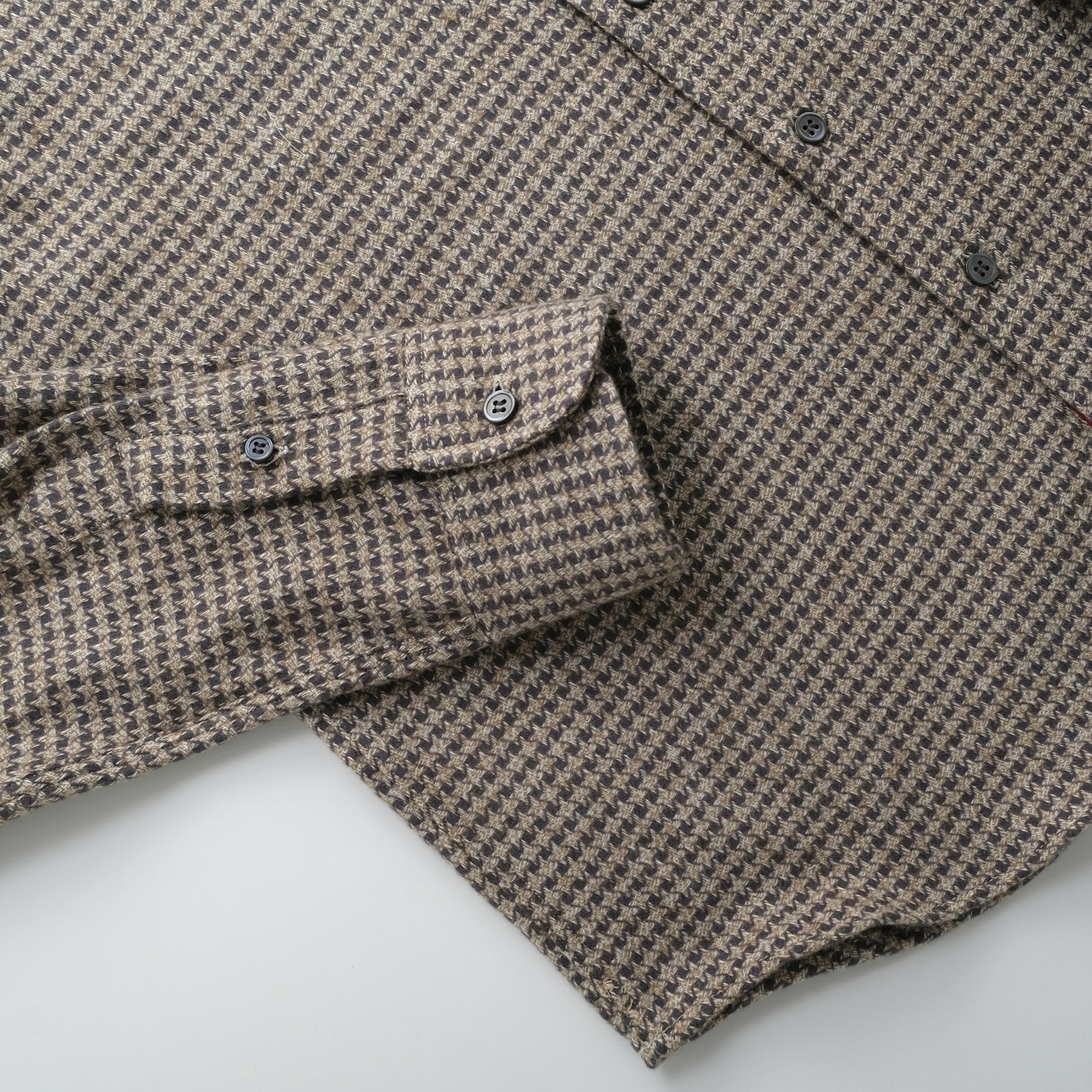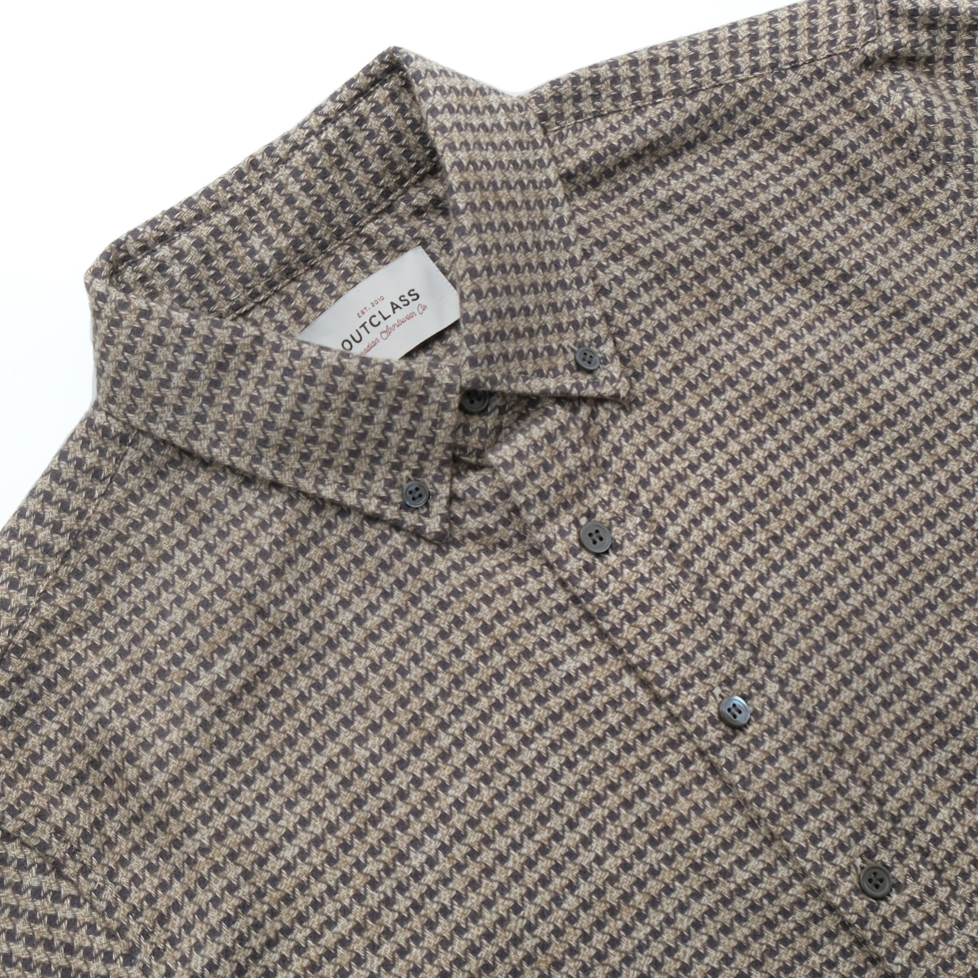 The Olive Houndstooth Classic Shirt brings timeless style and comfort to your wardrobe. Made from ultra-soft Portuguese flannel, it's complete with a relaxed fit, button-down collar and grey mother of pearl buttons.