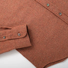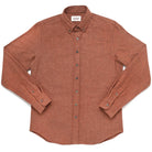 The Rust Herringbone Flannel Shirt is made with an ultra-soft flannel fabric from Portugal with subtle herringbone stripes throughout. The shirt sports a relaxed fit, button-down collar and grey mother of pearl buttons.