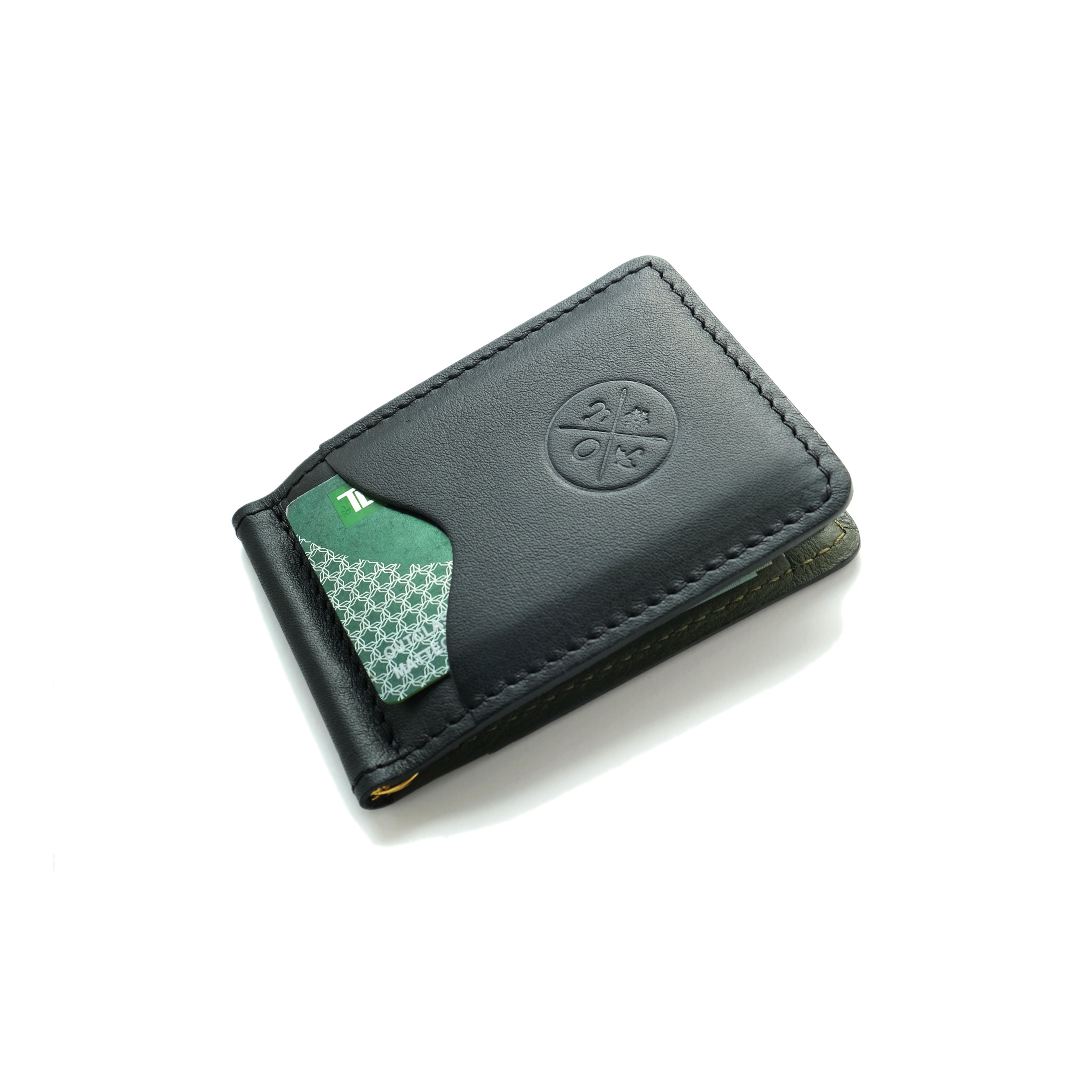 The Black Money Clip Cardholder is crafted from natural, vegetable-tanned leather and features four card slots with a contrasting leather interior. Its ultra-slim profile and Italian-made gold plated money clip combine style and practicality. Designed to offer wallet functionality in a sleek design, it's ideal for everyday use.