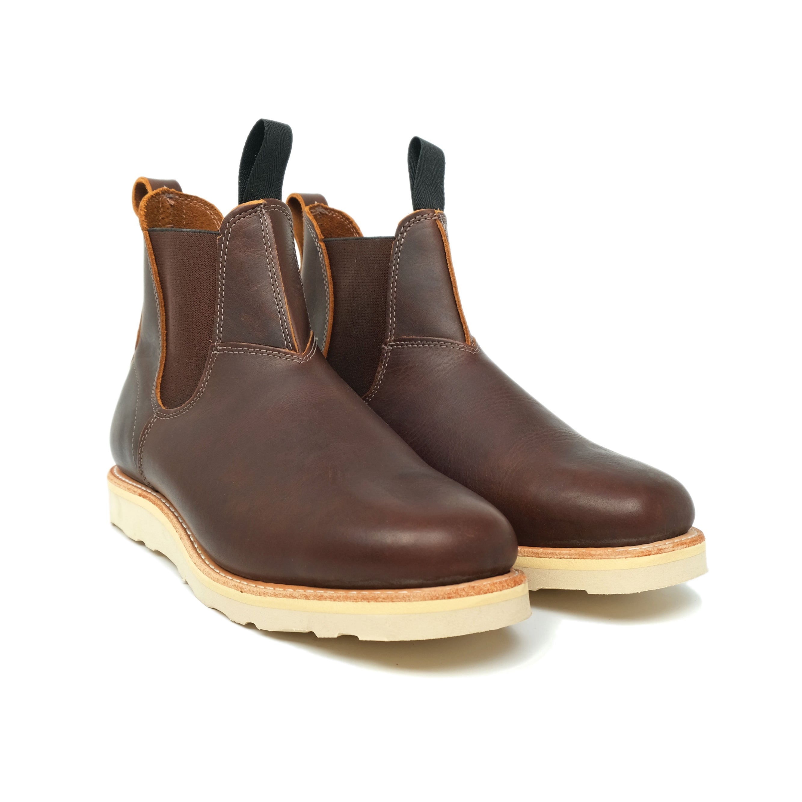 Handcrafted in Winnipeg, the Canada West 14360 Romeo Boot reimagines a classic Chelsea silhouette through a distinctly Canadian lens. Made from premium Horschel Cognac leather, it strikes a balance between rugged durability and refined simplicity. Elastic gussets and dual pull tabs offer easy wear, while the Vibram Christie outsole delivers lightweight comfort and dependable traction. Finished with tonal stitching and a removable cushioned footbed, the Romeo Boot is built for everyday versatility.
