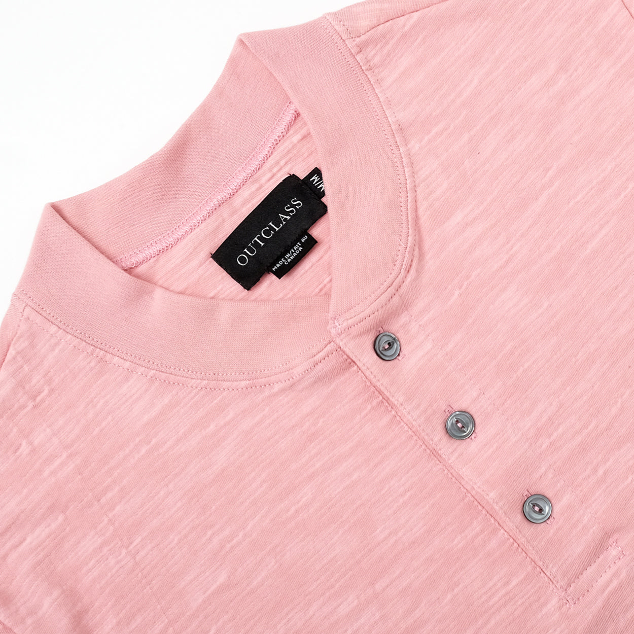 This Slub S/S Henley is crafted from a Toronto-milled cotton slub fabric for exceptional softness and comfort. It features a rounded hem, grey cat’s eye mother of pearl buttons and a classic 3-button placket. With its breathable material, it's ideal for everyday wear.