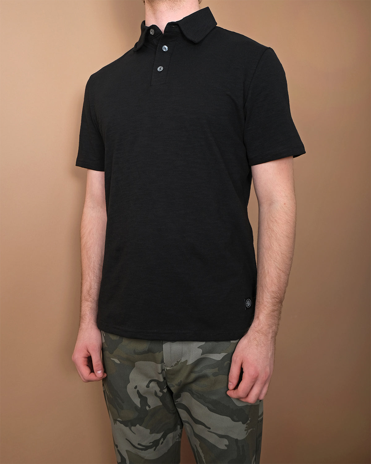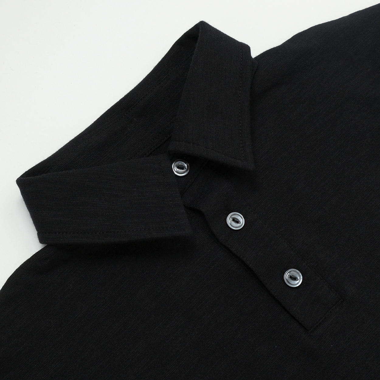 Crafted with pride, this S/S Polo is made from Toronto-milled slub fabric, dyed, cut, and sewn right here in Canada. With a straight hem, collar and grey cat's eye mother of pearl buttons, this polo combines local craftsmanship with everyday comfort and style.