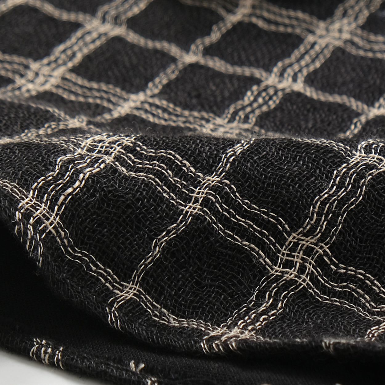 This Linen Gauze Wiggly Plaid Long Sleeve Easy Shirt combines Portuguese two-ply fabric with a unique design. The outer layer features a wavy plaid linen pattern, while the inner layer offers smooth cotton gauze comfort. The shirt has a relaxed fit with a practical back pleat and is finished with grey mother of pearl buttons for a clean look.