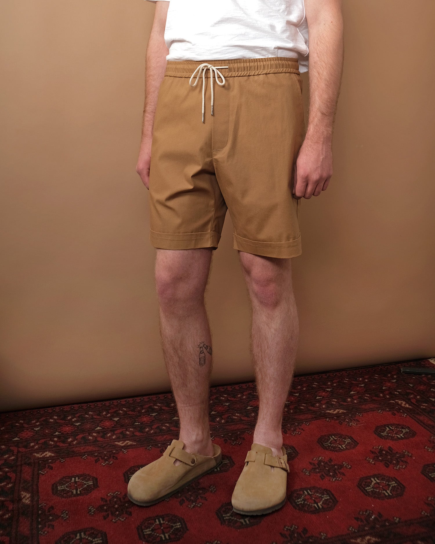 Crafted from a crisp cotton ripstop fabric from Spain, these shorts are built for movement and durability. They feature an elastic waistband with a drawstring for a comfortable, adjustable fit, slanted front hand pockets, double-welt rear pockets, and a clean rolled cuff. Designed for utility and ease, our travel shorts are ready for wherever the day takes you.