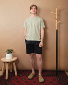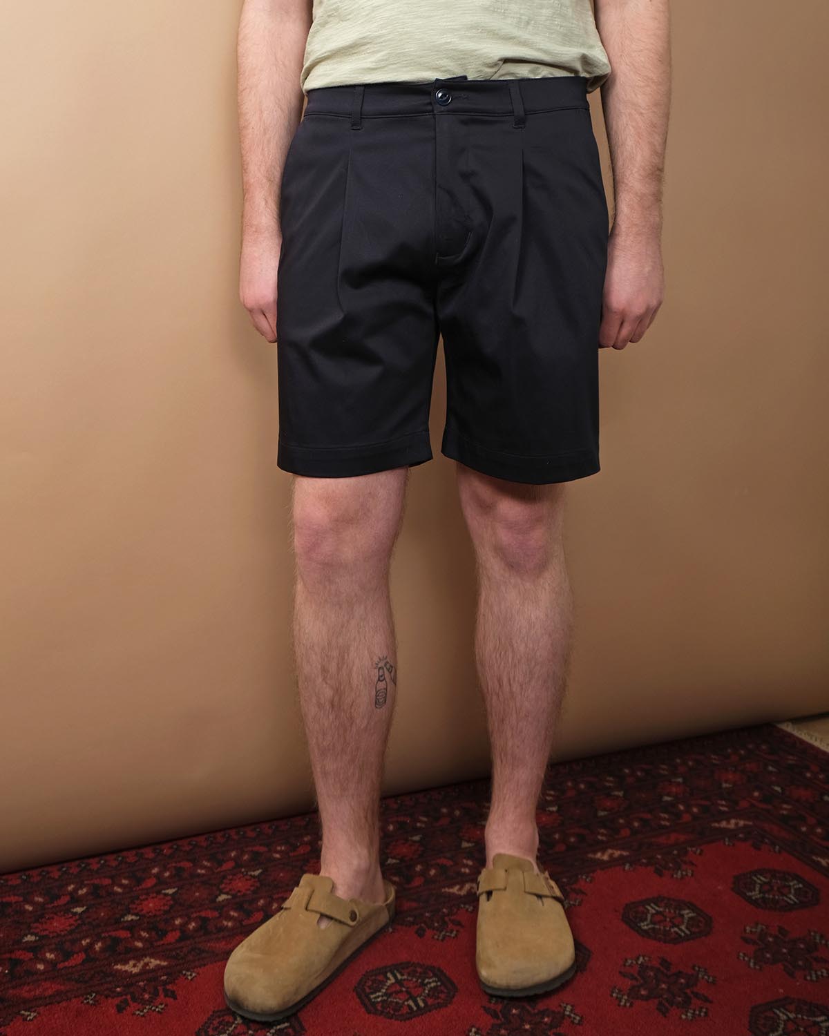 The Sateen Pleated Short is crafted from a smooth, lustrous cotton fabric from Spain, offering a subtle sheen and comfortable 2% stretch. The tailored fit is enhanced with pleats at the hips, a zipper fly and a corozo nut button closure. With slanted front pockets and double-welt rear pockets, these shorts blend style and functionality seamlessly.
