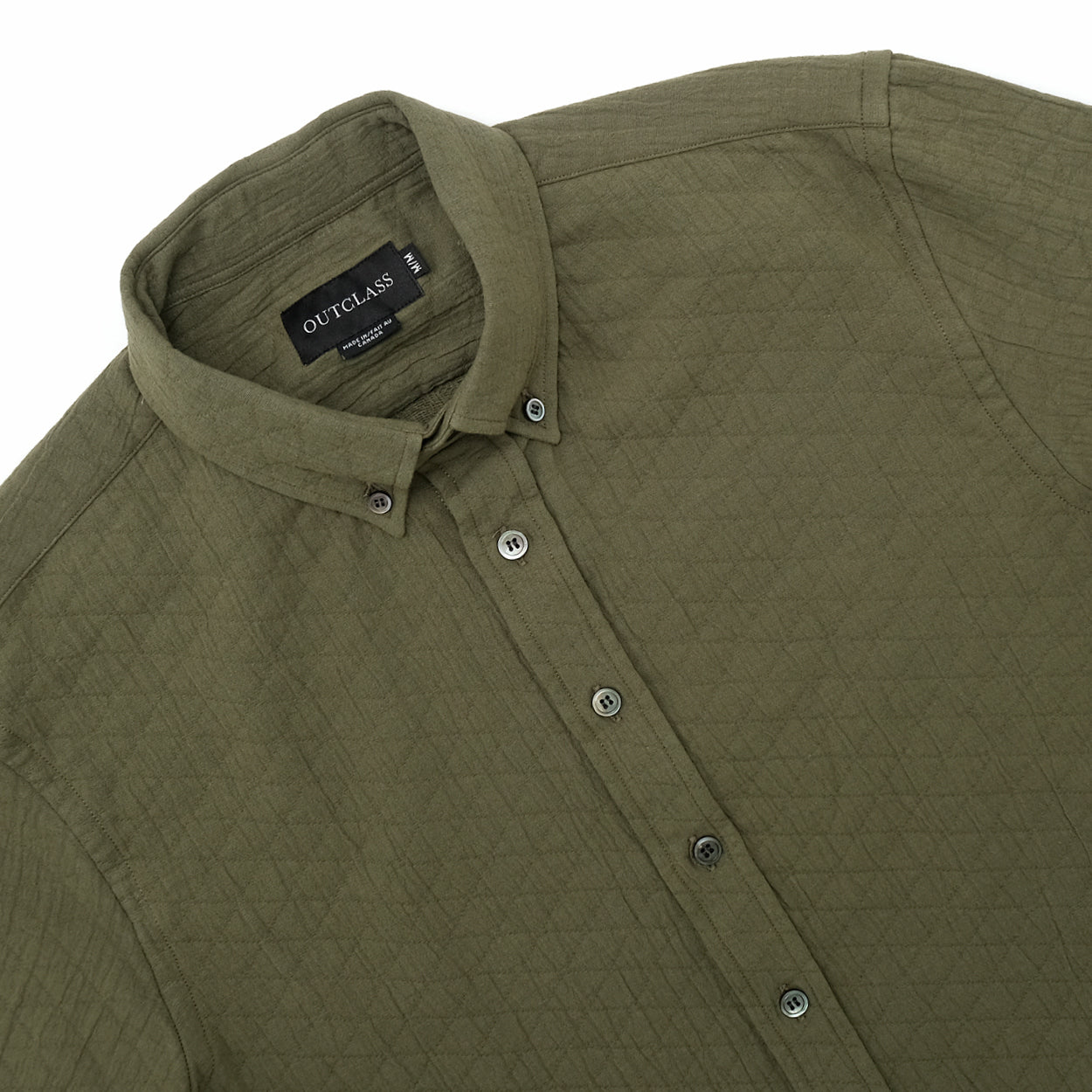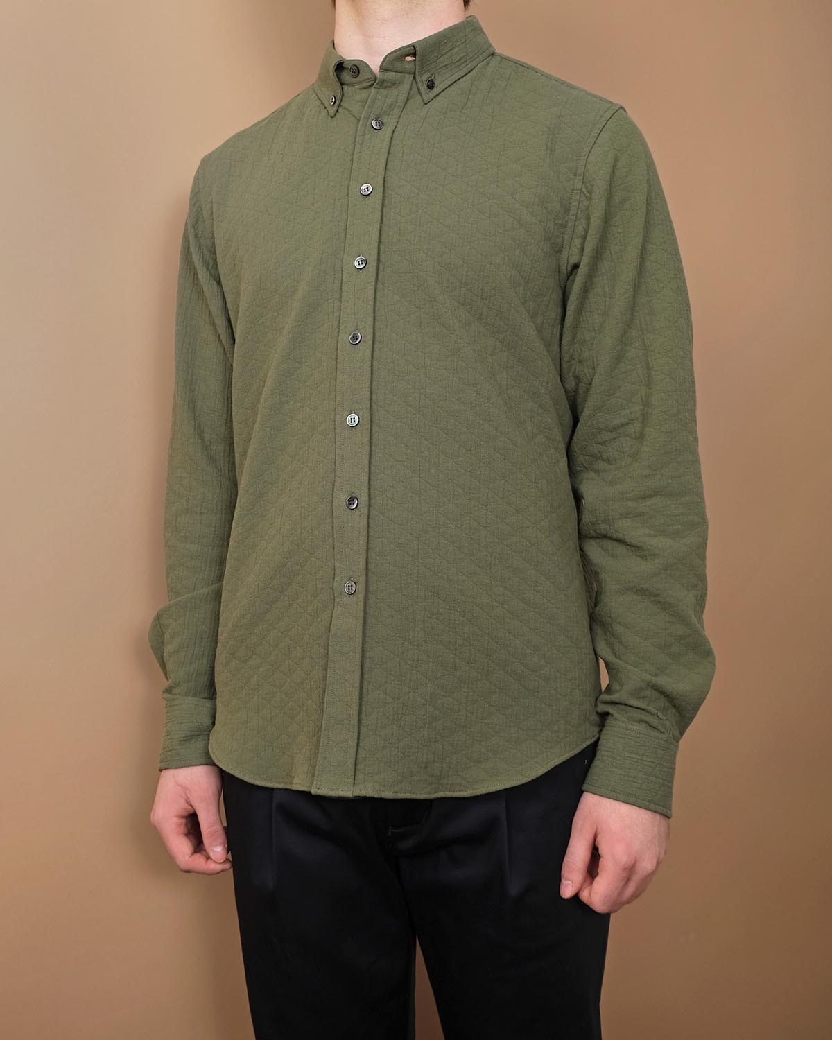 Timeless and easygoing, the Olive Quilted L/S Classic Shirt is made from a soft quilted cotton fabric from Spain. Designed with a relaxed fit, button-down collar, and finished with grey mother of pearl buttons, the shirt offers a laid-back yet polished look.