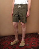 Crafted from a crisp cotton ripstop fabric from Spain, these shorts are built for movement and durability. They feature an elastic waistband with a drawstring for a comfortable, adjustable fit, slanted front hand pockets, double-welt rear pockets, and a clean rolled cuff. Designed for utility and ease, our travel shorts are ready for wherever the day takes you.