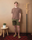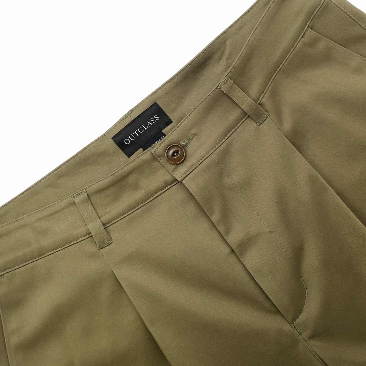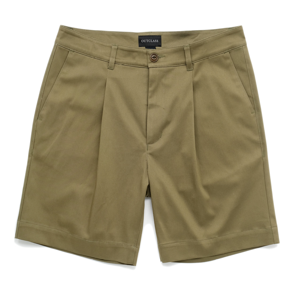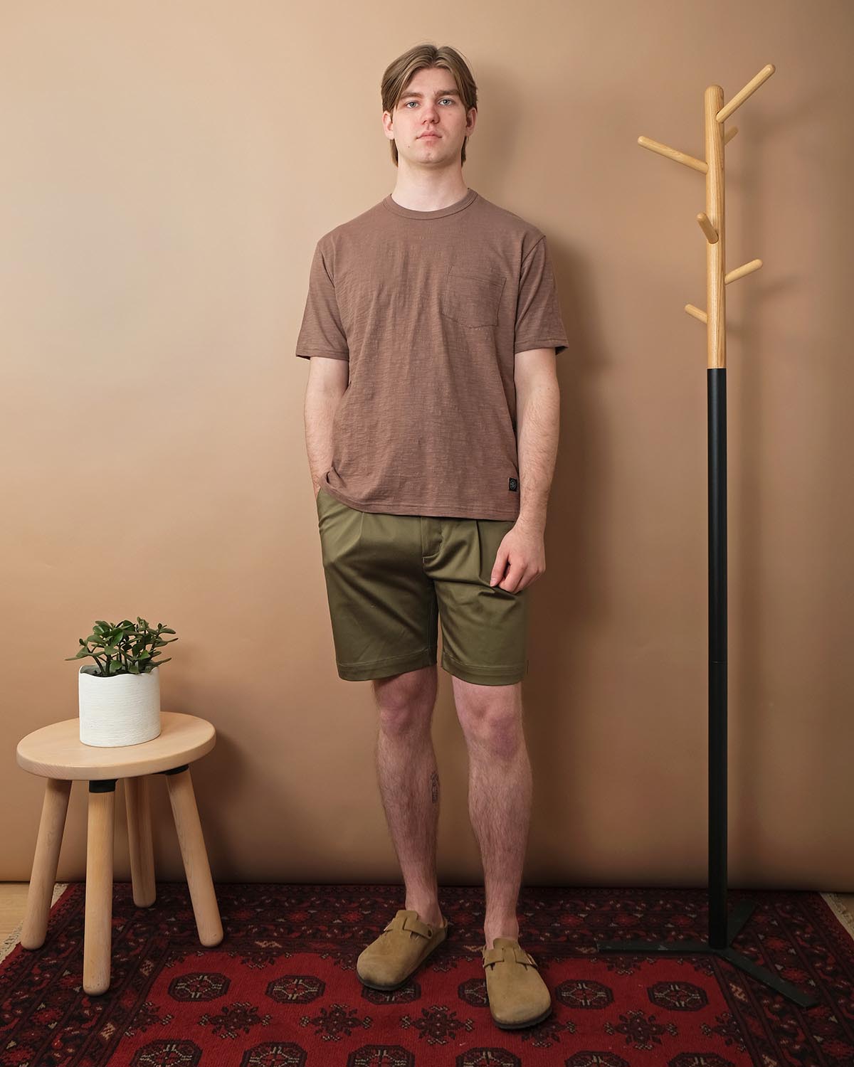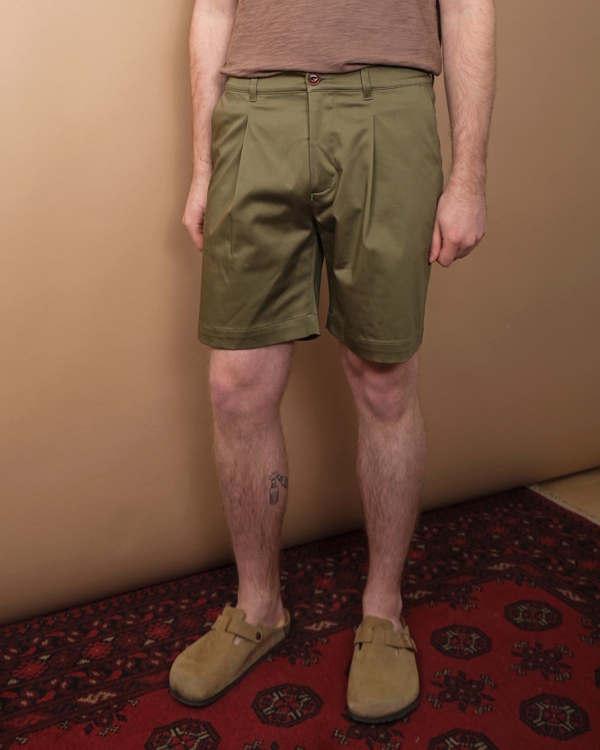 The Sateen Pleated short is crafted from a smooth, lustrous cotton fabric from Spain, offering a subtle sheen and comfortable 2% stretch. The tailored fit is enhanced with pleats at the hips, a zipper fly and a corozo nut button closure. With slanted front pockets and double-welt rear pockets, these shorts blend style and functionality seamlessly.