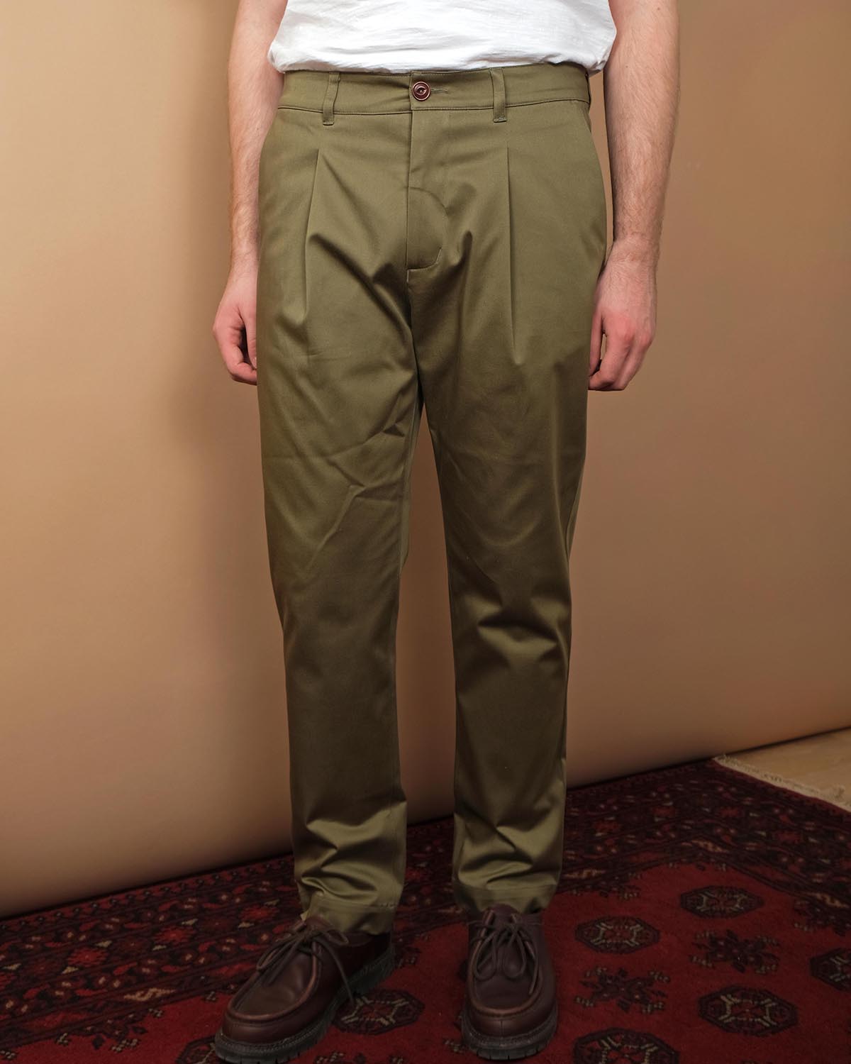 Olive Sateen Pleated Trousers