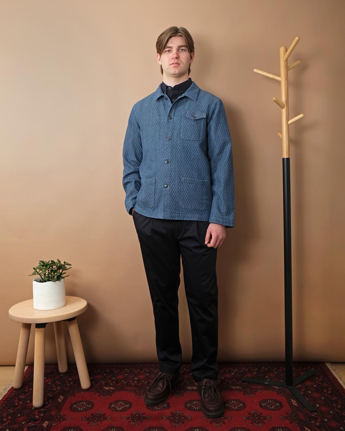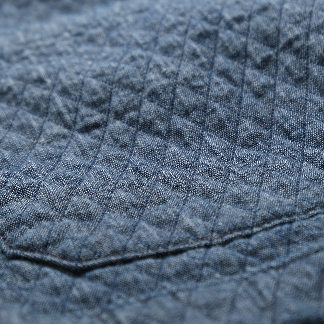 Introducing the Quilted Chambray Chore Coat, a workwear-inspired staple with a modern twist. Made from 100% cotton chambray from Japan, the quilted fabric adds depth and texture. The coat features two patch hand pockets, breast pocket with flap closure, an interior pocket and bar tacks at all stress points for added durability. The Chore Coat has been garment washed for a perfectly broken-in feel.