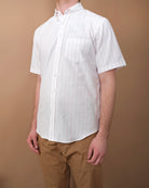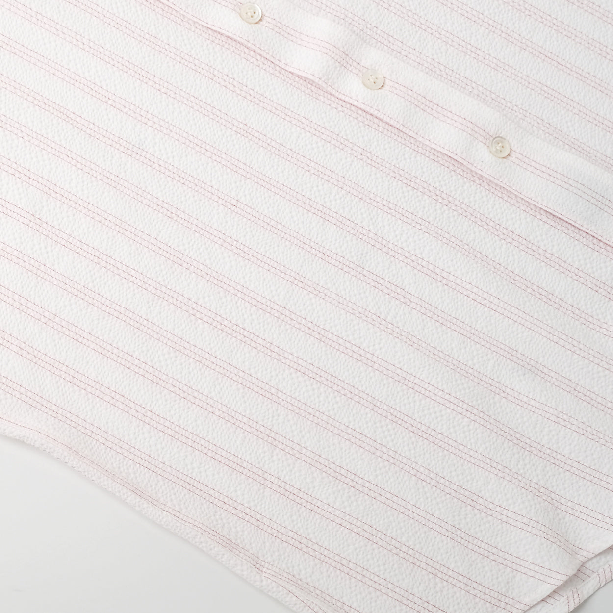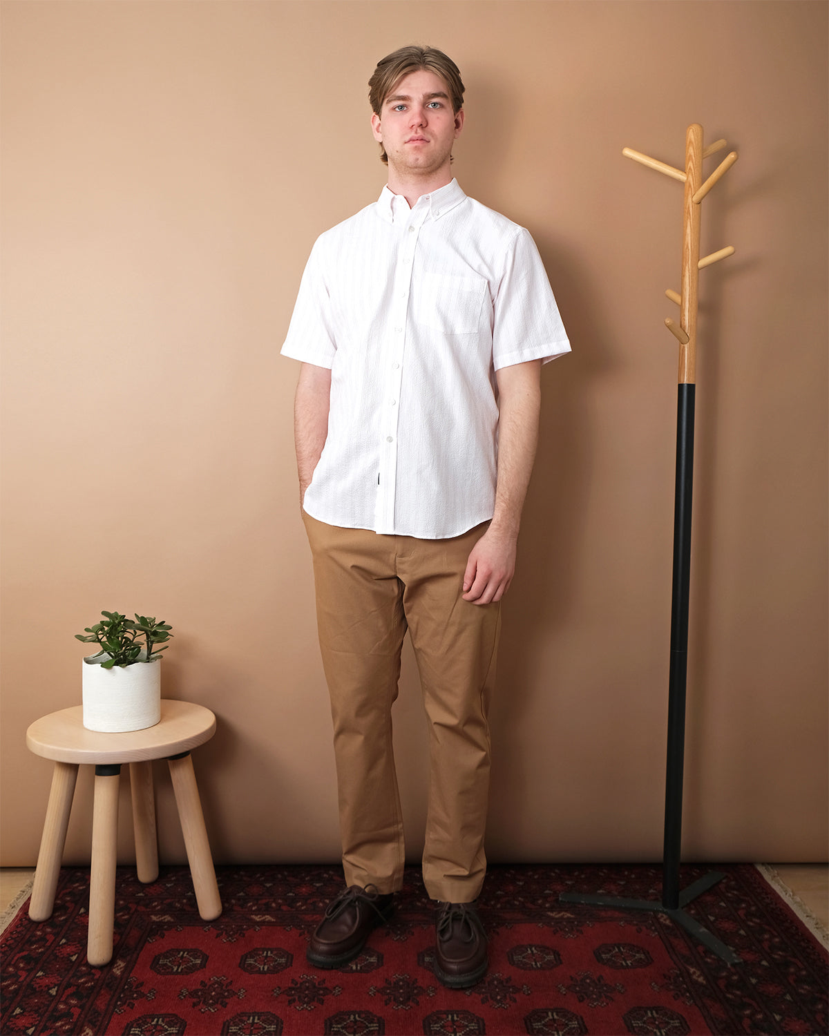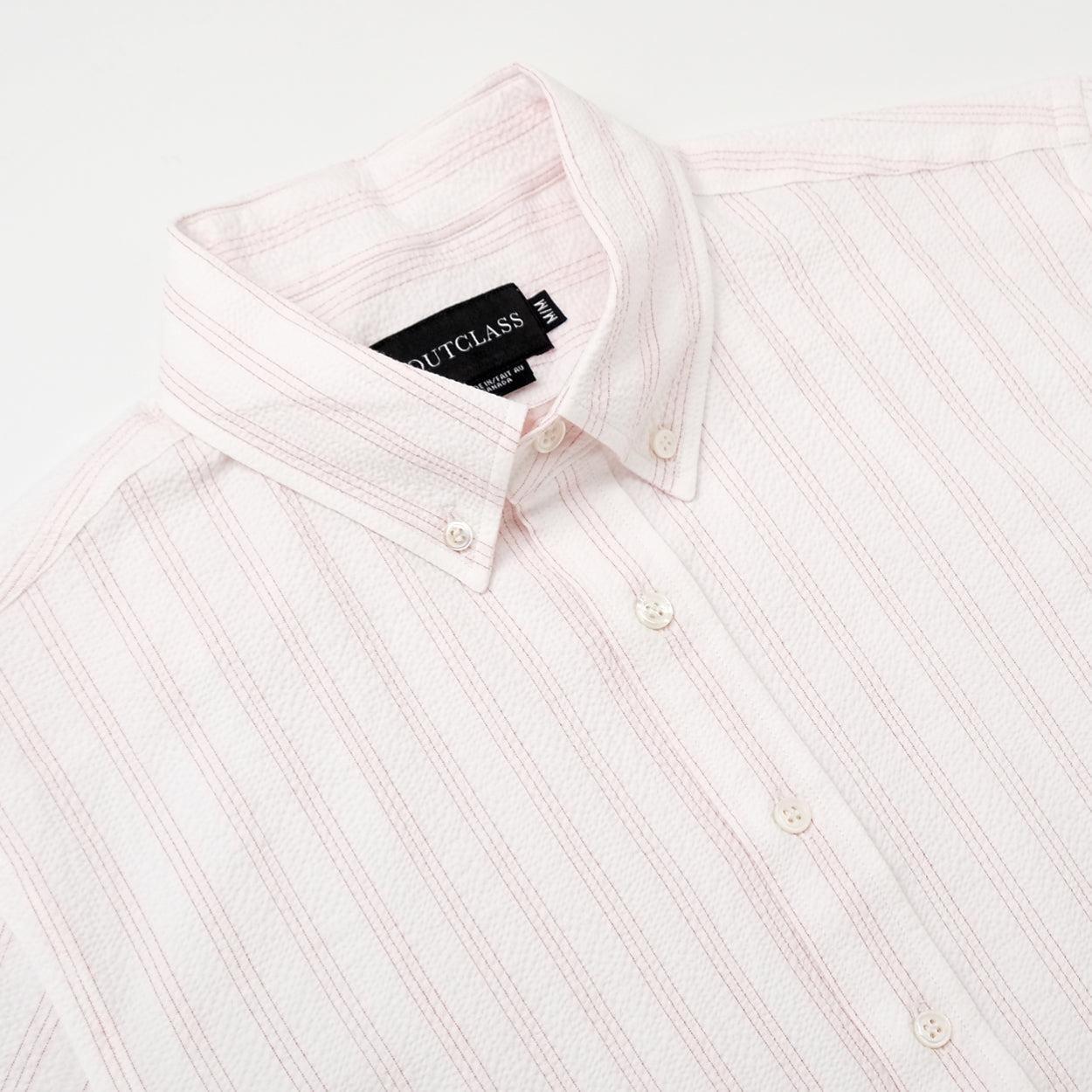 Timeless and easygoing, the Salmon Stripe S/S Classic Shirt is made from a seersucker cotton, featuring subtle vertical stripes for added depth and texture. Designed with a relaxed fit, button-down collar, and finished with white mother of pearl buttons, the shirt offers a laid-back yet polished look.