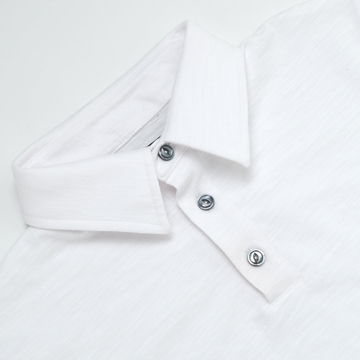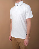 Crafted with pride, this S/S Polo is made from Toronto-milled slub fabric, dyed, cut, and sewn right here in Canada. With a straight hem, collar and grey cat's eye mother of pearl buttons, this polo combines local craftsmanship with everyday comfort and style.