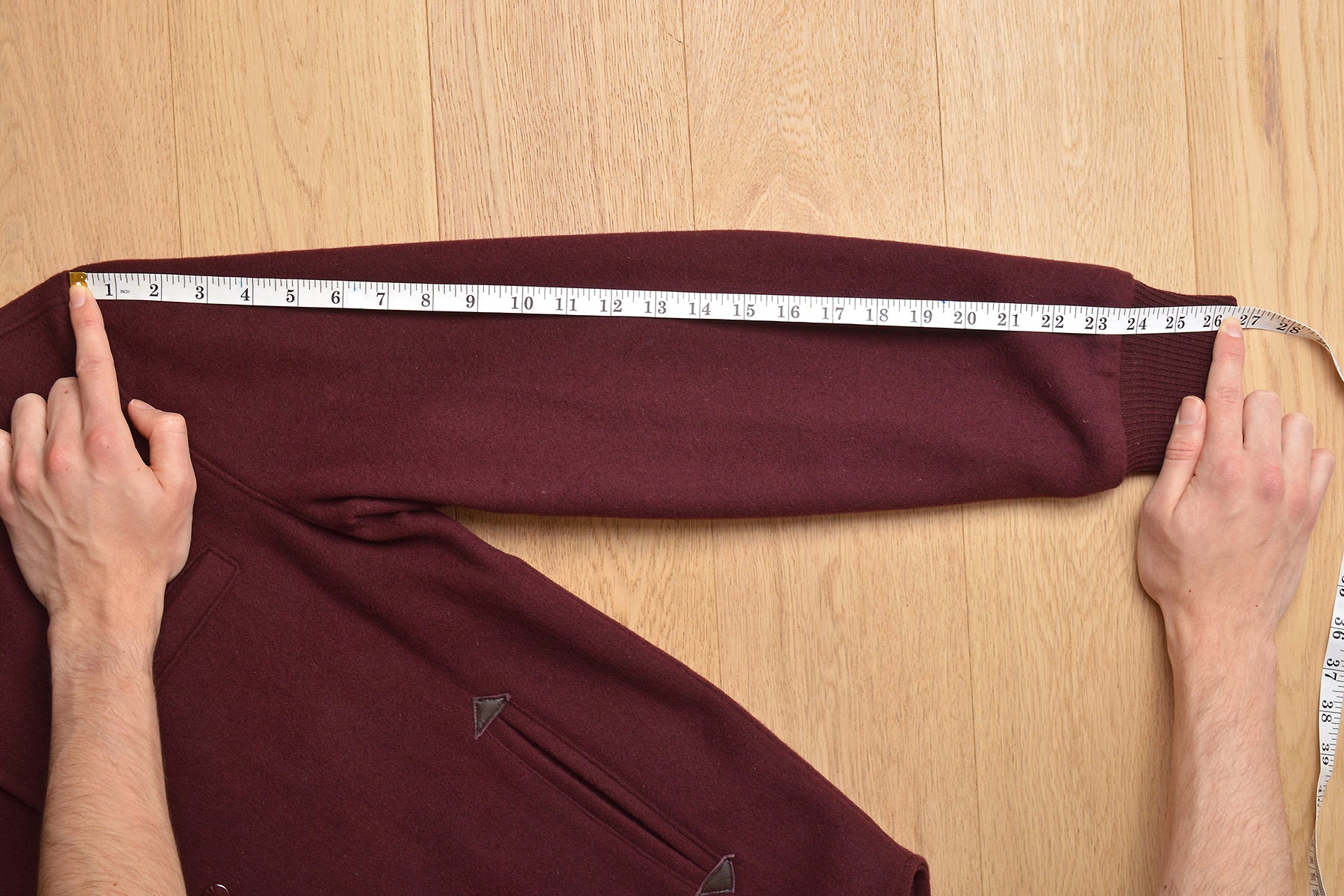 Measure from shoulder seam to the end of the cuff. For items with rib, include the rib as well.