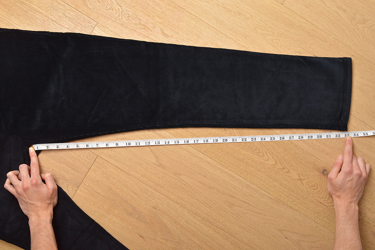 Measure from the crotch seam all the way down to the bottom of the leg.