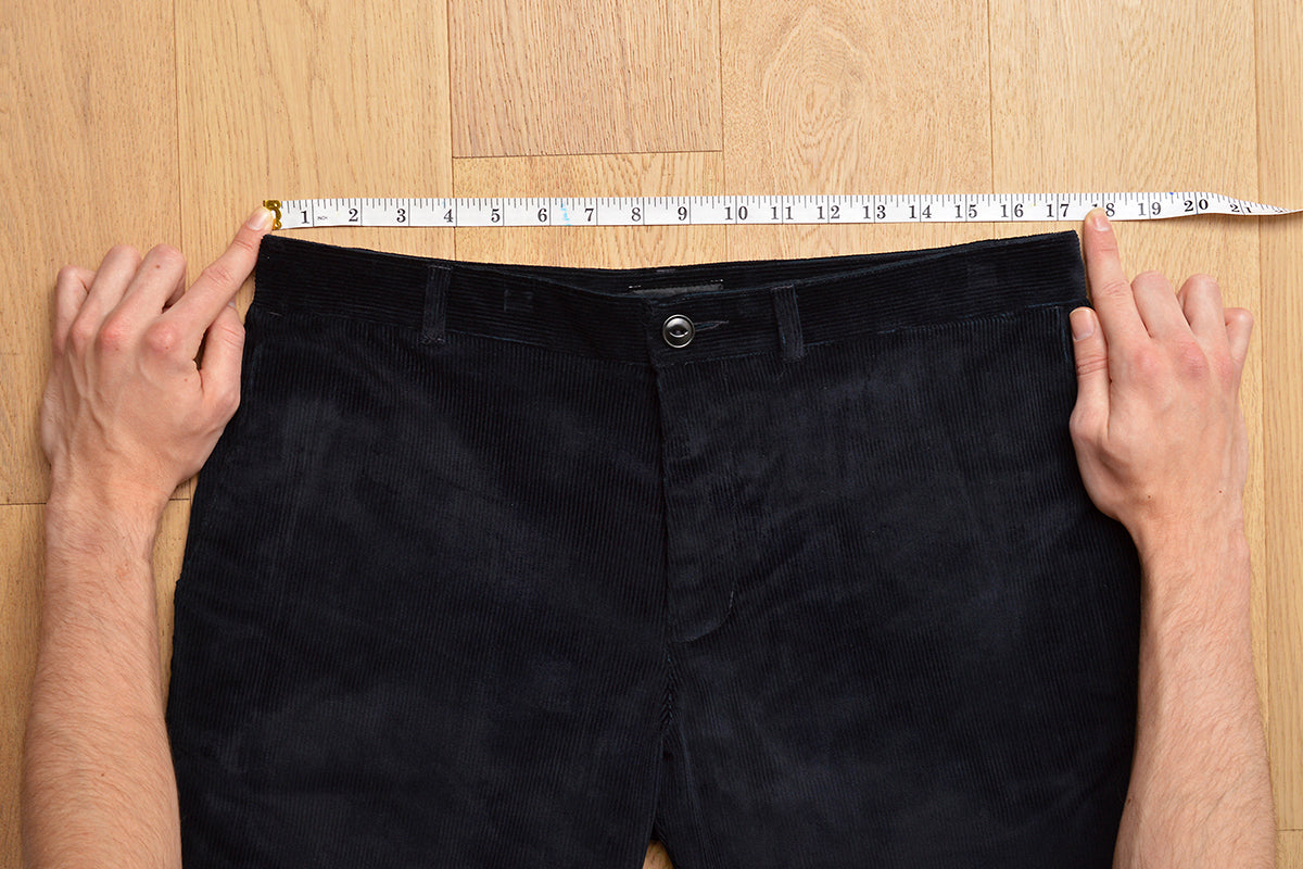 Gently pull the waistband to ensure that the garment is laying flat. Measure straight across the top of the waistband.